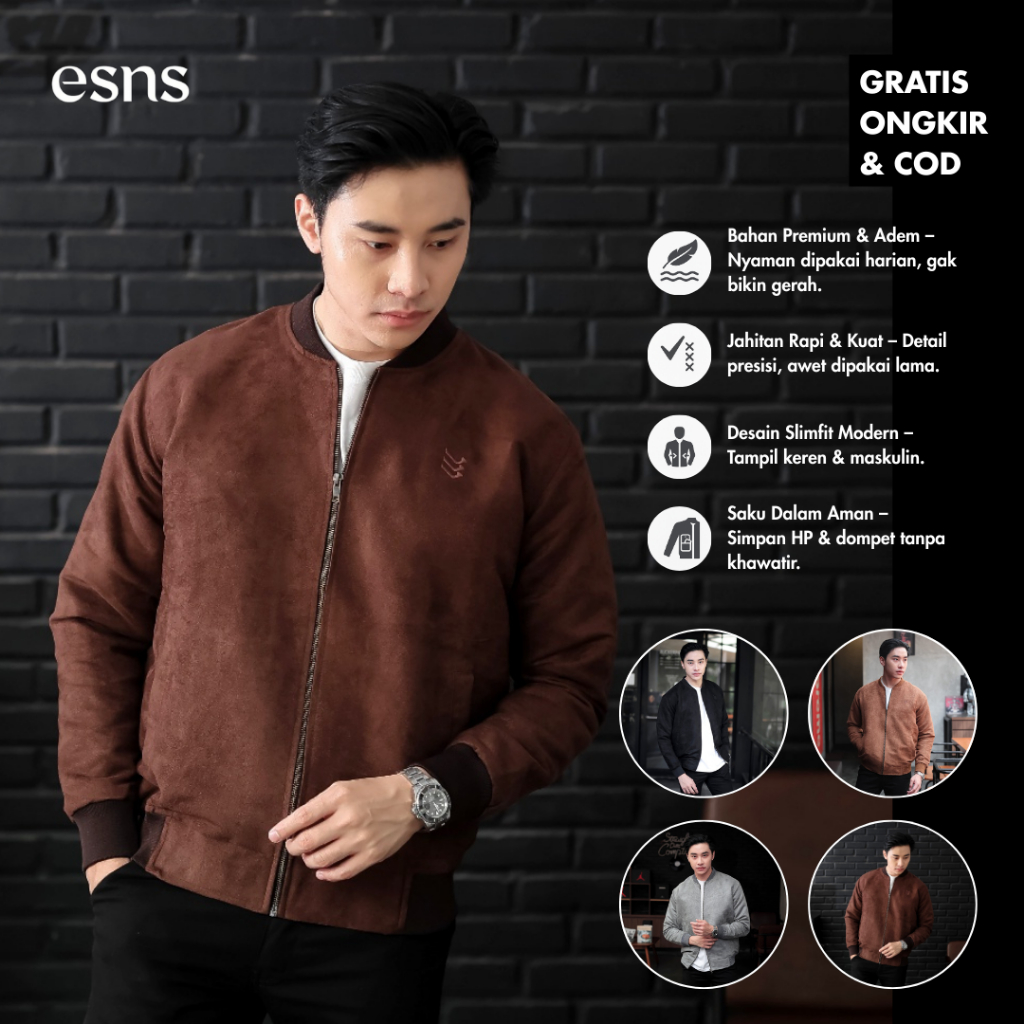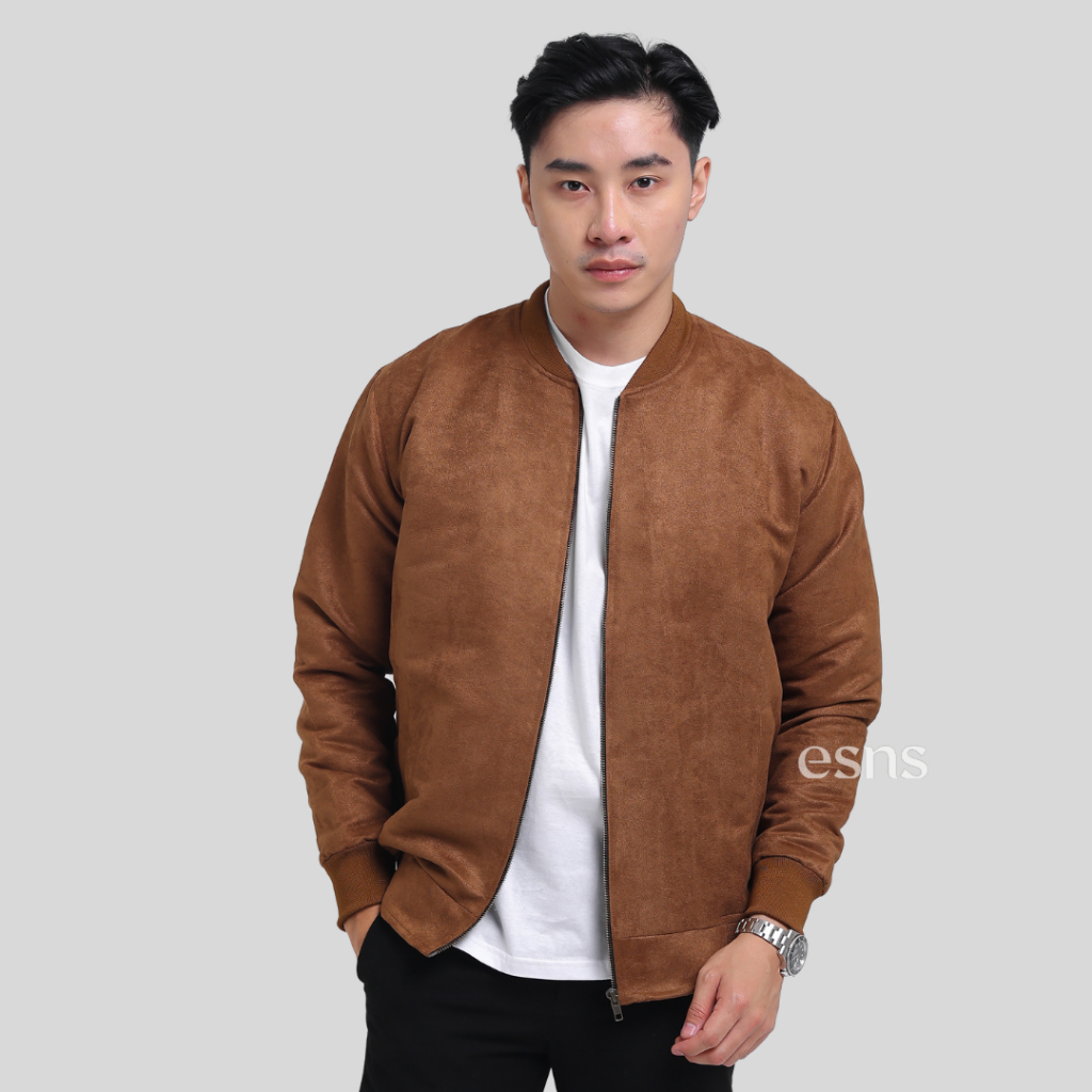ESNS Jaket Suede Malvin Basic Kasual Streetwear Classic Bomber Semi-Formal Pria Slimfit Nyaman Lembut Panjang Keren Casual