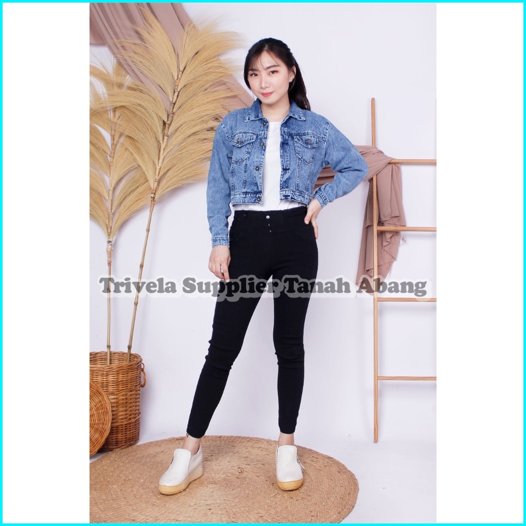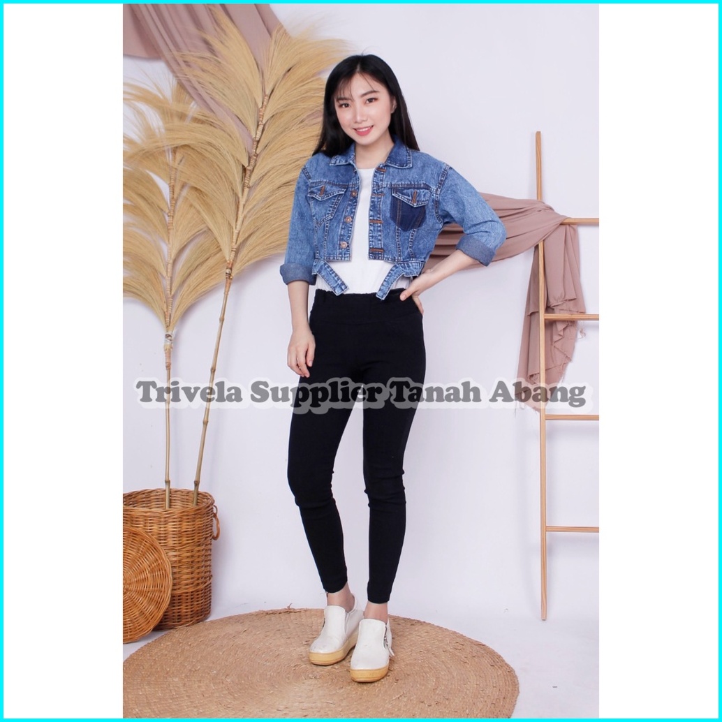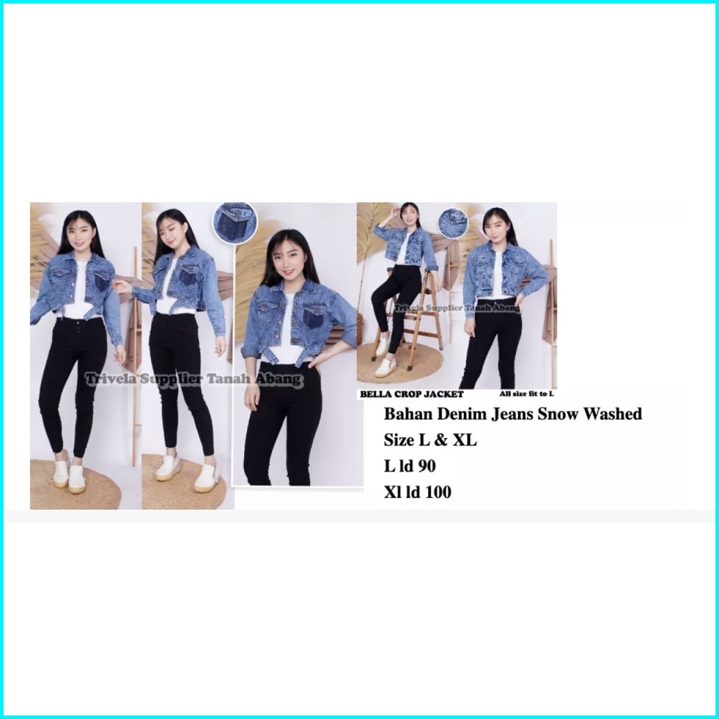 Jacket Jeans Crop Bella Jaket Jeans Crop Wanita