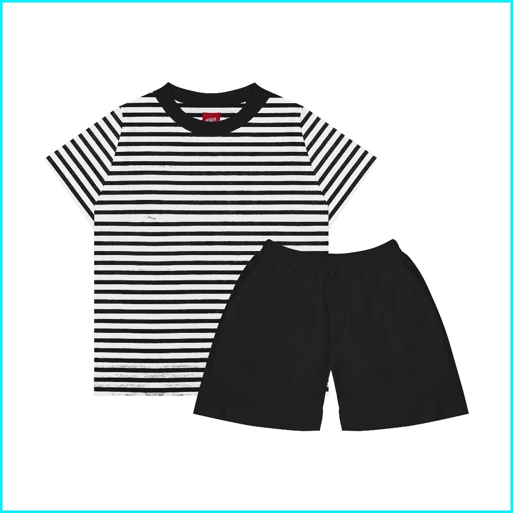 Eba Kids Kaos Anak Stripe Salur Davis Set Setelan Kaos Anak 1-10 Tahun Hitam