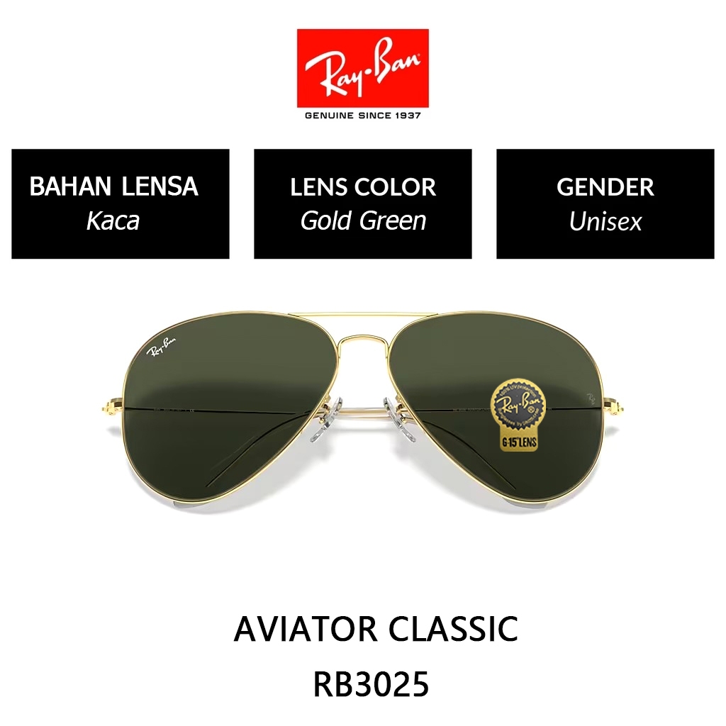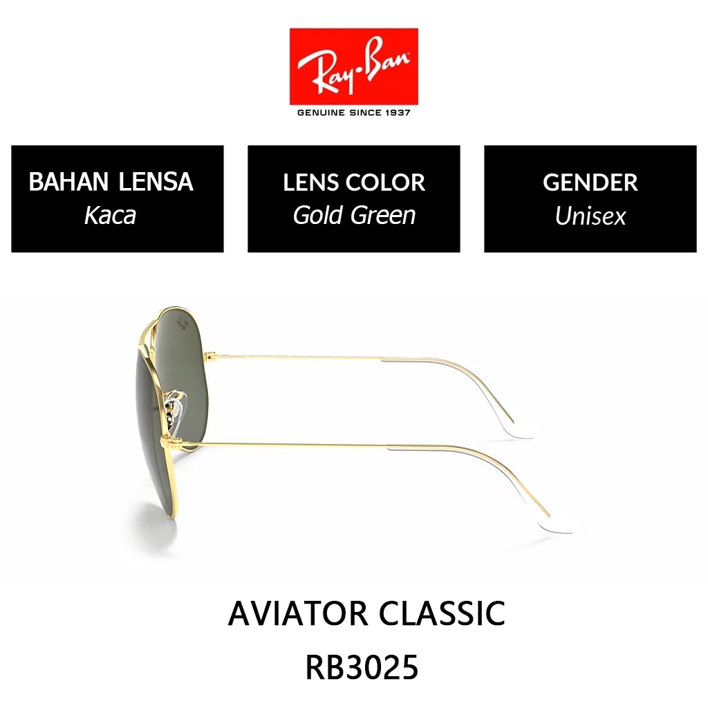 Kacamata Hitam RAY-BAN Aviator Large Metal | RB3025 | Global Fitting | Sunglasses | 58mm Gold Black Green Original 100 PERSEN lensa kaca
