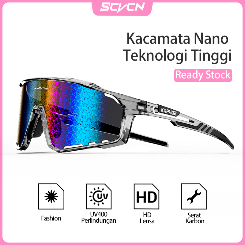 KAPVOE Kacamata Hitam Fashion Serat Karbon untuk Pria, Kacamata Sepeda MTB, Kacamata Sepeda UV400 Nano untuk Wanita