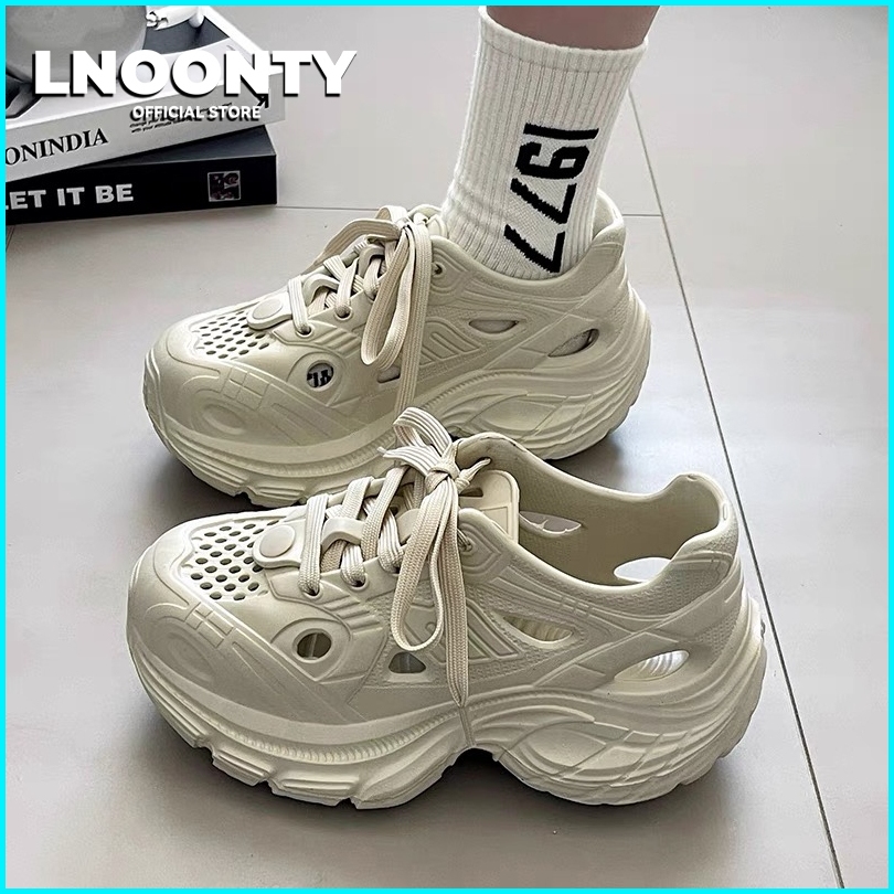 Lnoonty Sandal Wanita Sepatu Sneakers Wanita Korea Terbaru Tebal Tinggi Sepatu Perempuan Olahraga Ringan Empuk