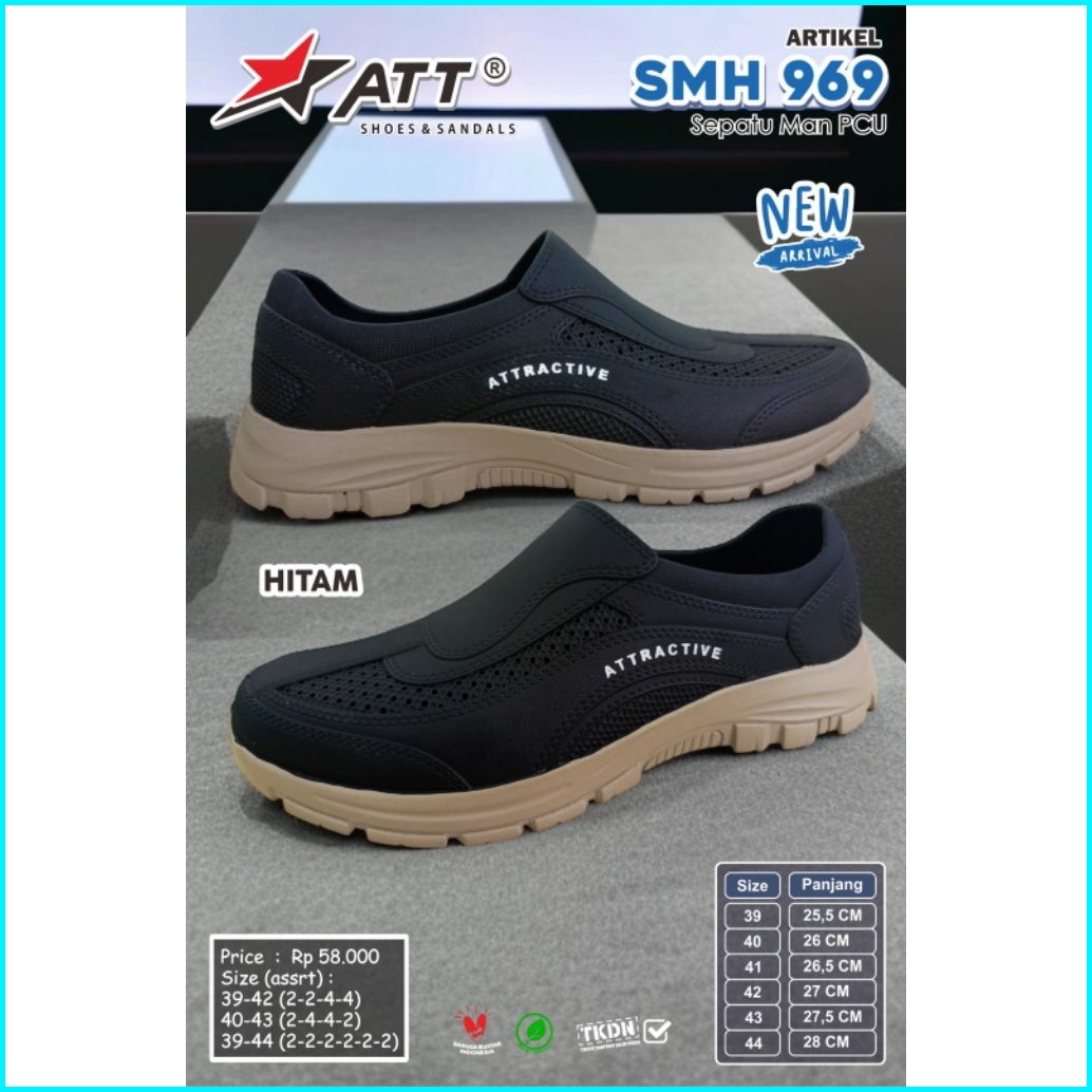 Sepatu Karet Pria Warna Hitam Slipon Att Smh 969