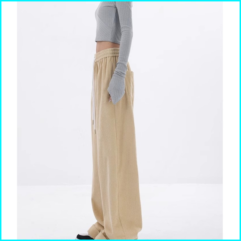 Keygirl Celana Corduroy Wanita Jumbo Kasul Celana Kaki Lebar Pinggang Tinggi Korduroi Korean Kekinian