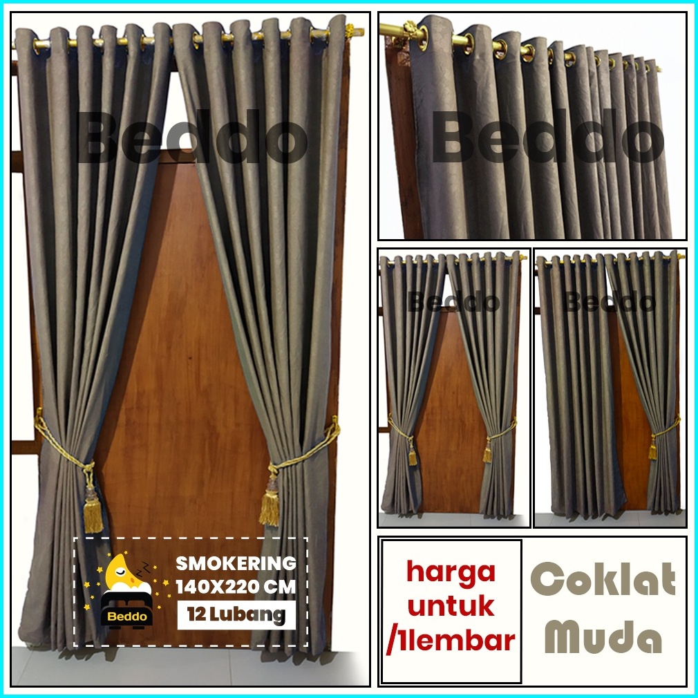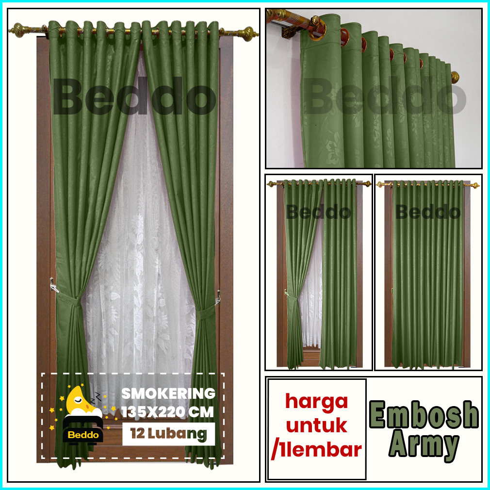 Tirai Pintu Dan Gorden Jendela Polos Embos Smokering 12 Lubang Korden Grey Maroon Navy White Army