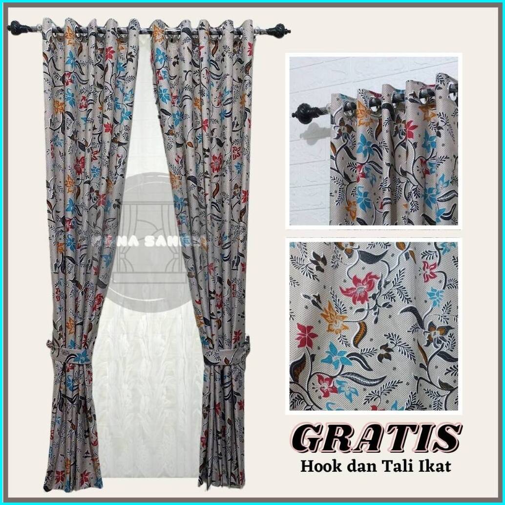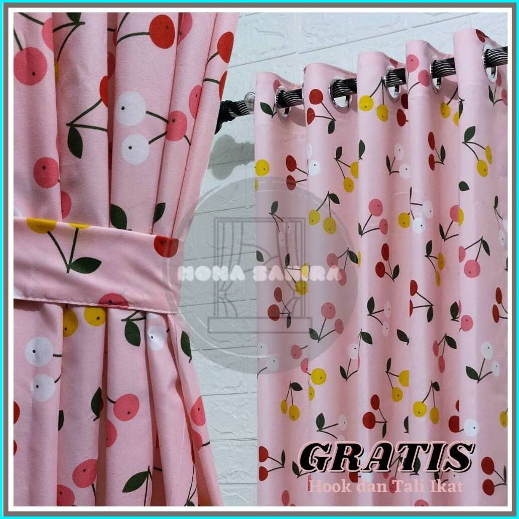 Gorden Jendela Pintu Minimalis Katun Model Smokering Motif Aesthetic Free Hook Dan Tali Ikat