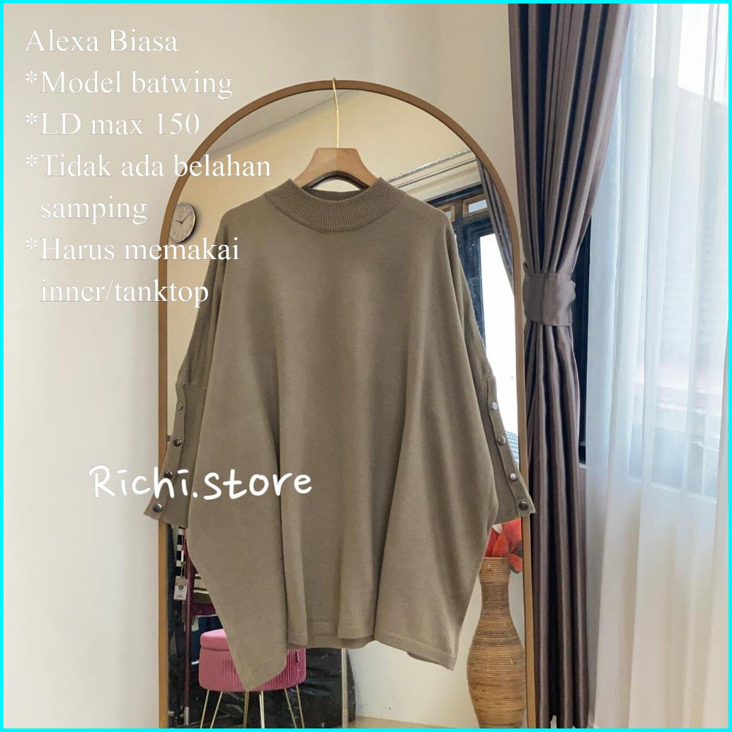 Alexa Batwing Rajut Atasan Wanita Turtleneck Lengan Kancing
