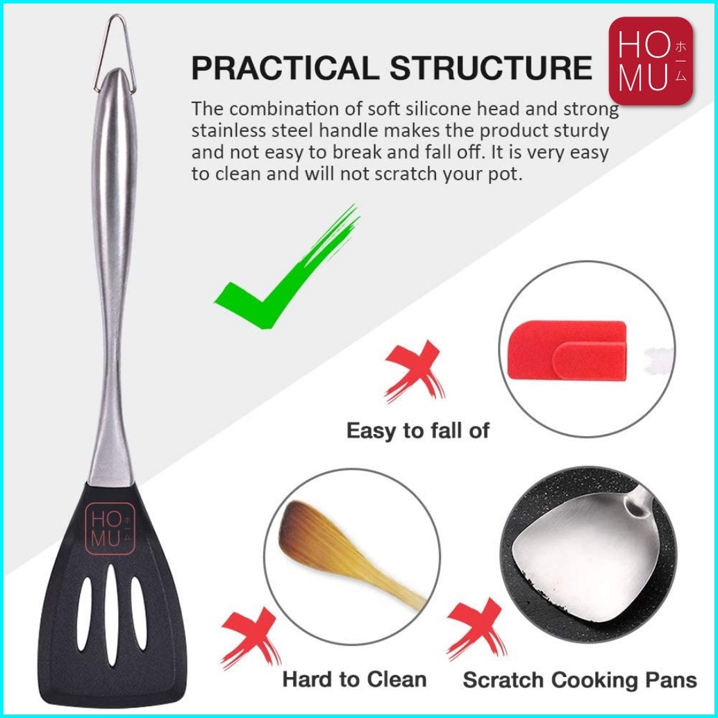 Homu Chorikigu Spatula Sutil Silikon Kitchen Utensil Set Gagang Stainless Handle Silicone Bpa Free
