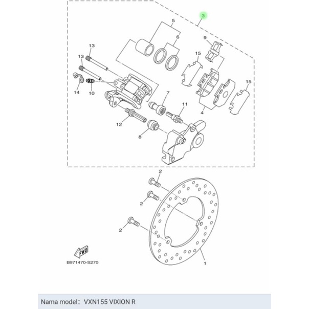 CALIPER KALIPER BELAKANG R15 V3 XSR 155 MT15 VIXION R ASLI ORI YAMAHA B97 F580W 00