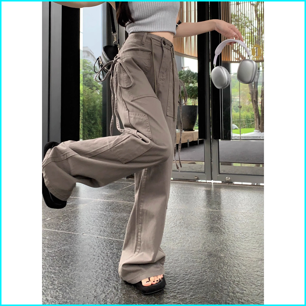 Cargo Jeans Wanita Highwaist Straight Loose