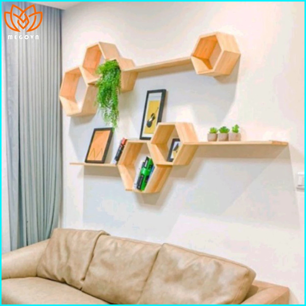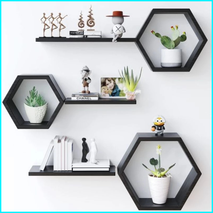 Rak Dinding Hexagonal Hiasan Dinding Aesthetic Rak Heksagonal Kayu Jati Belanda Pajangan Hiasan Hexagon Serbaguna Dindin