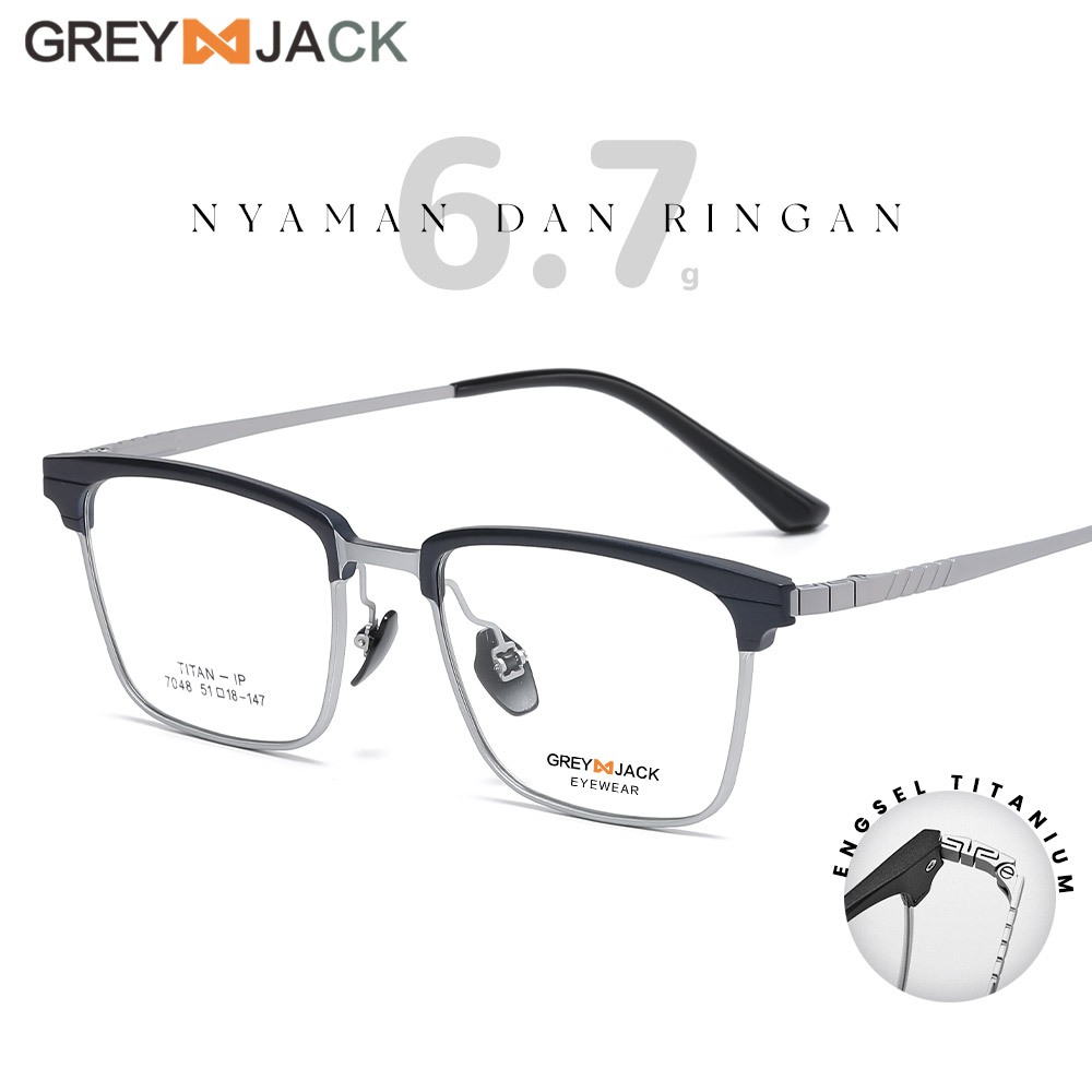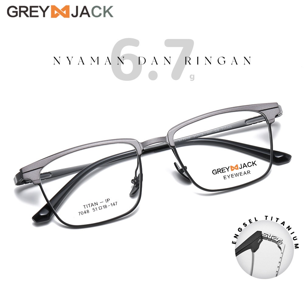 Grey Jack Frame Kacamata Model Kotak Bahan Titanium Ringan Kokoh Fashion Bisnis Pria Wanita Bisa Minus 7048