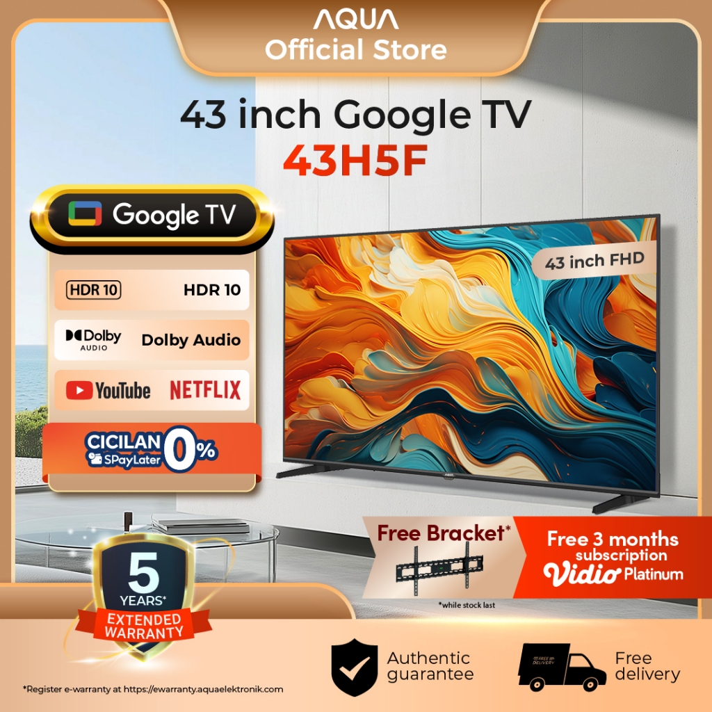 AQUA Elektronik TV 43H5F - FHD-HDR 10-Dolby Audio- Google TV - Google Play/Netflix/YouTube/Disney+Hotstar - Smart TV