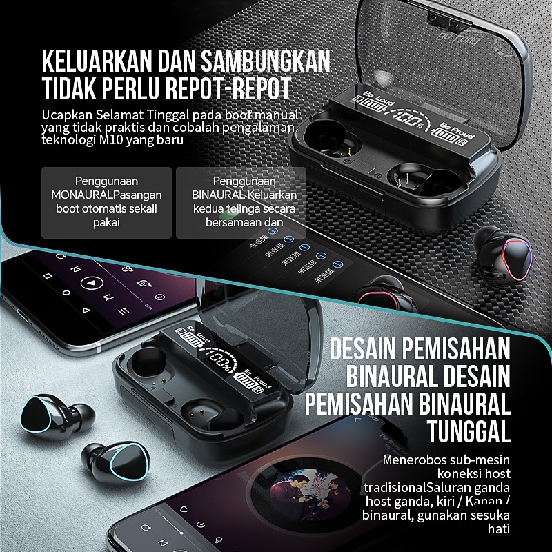 M10 TWS Wireless Headset Bluetooth In Ear Headphone Noise-Cancelling 10D bass stereo HiFi HD LED Display Wireless Bluetooth Hetset 3500mAh wer Bank Earphone