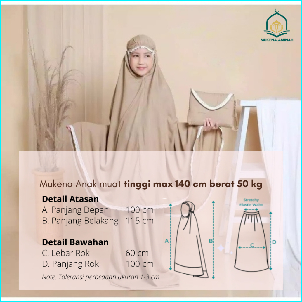 Mukena.aminah Mukena Anak Tanggung Sheila Amplop Traveling Bali Polos Renda