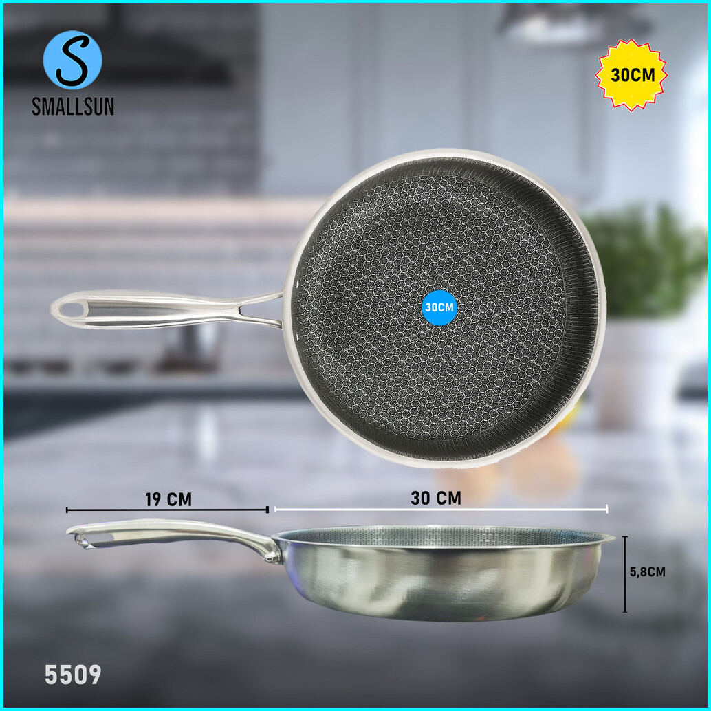 Gemei Wajan Penggorengan Fry Pan Mewah Stainless Steel Bahan Tebal Best Quality Anti Lengket