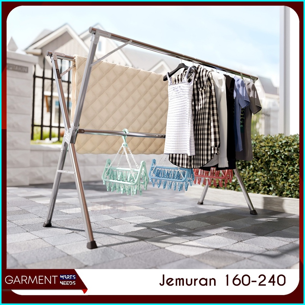 Jemuran Baju Handuk Outin Lipat Tekuk Stainless Steel Anti Karat Kuat