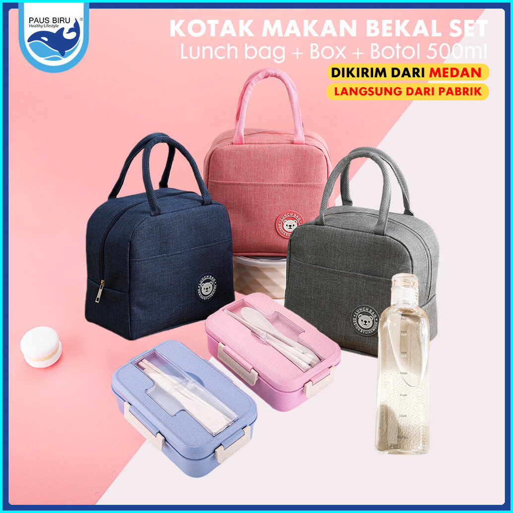 Paus Biru - Lunch Box Set 1000ml Kotak Bekal Jerami Gandum Kotak Makan Free Sendok Sumpit Kotak Nasi Medan Ready Stock