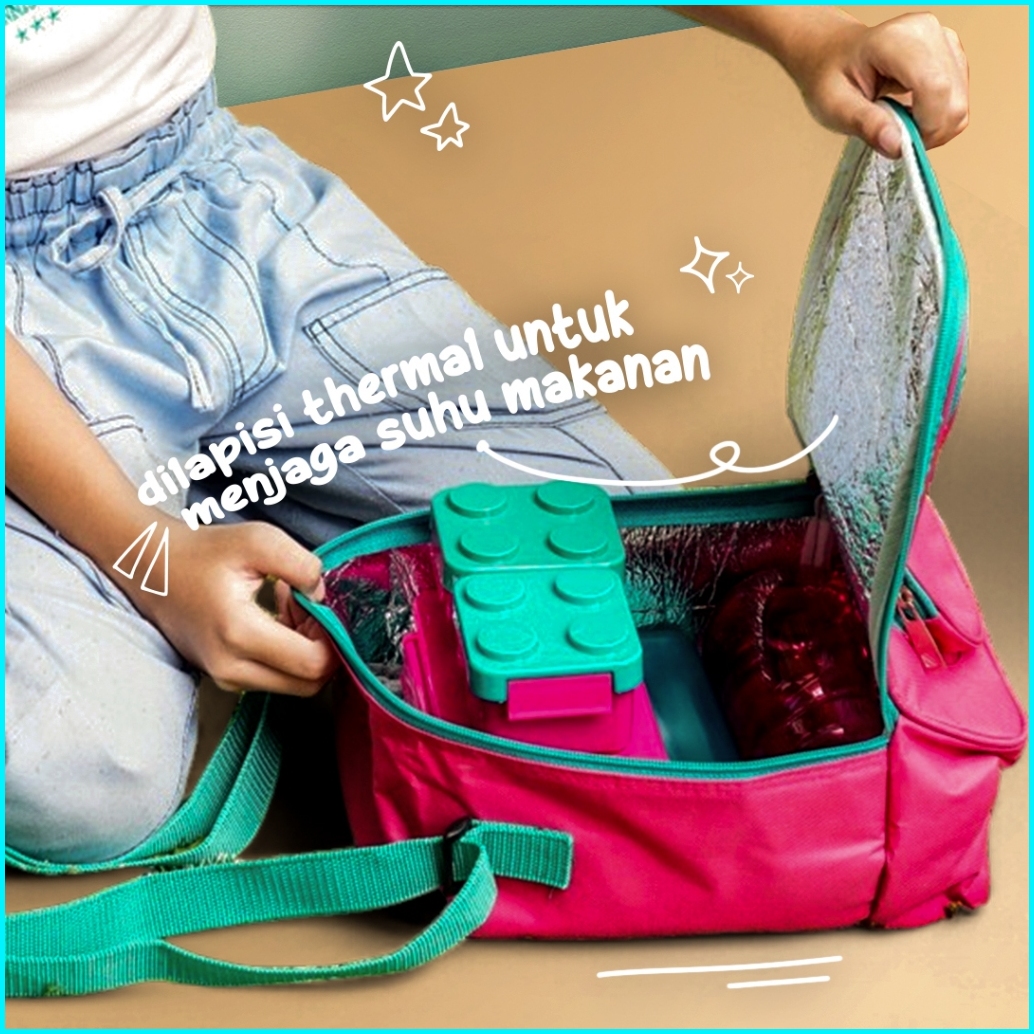 Technoplast Big Block Set Tas Bekal Makan Anak Anti Tumpah Kids Lunch Box Set Botol Minum Kotak Bekal Anak Lego Bpa Free