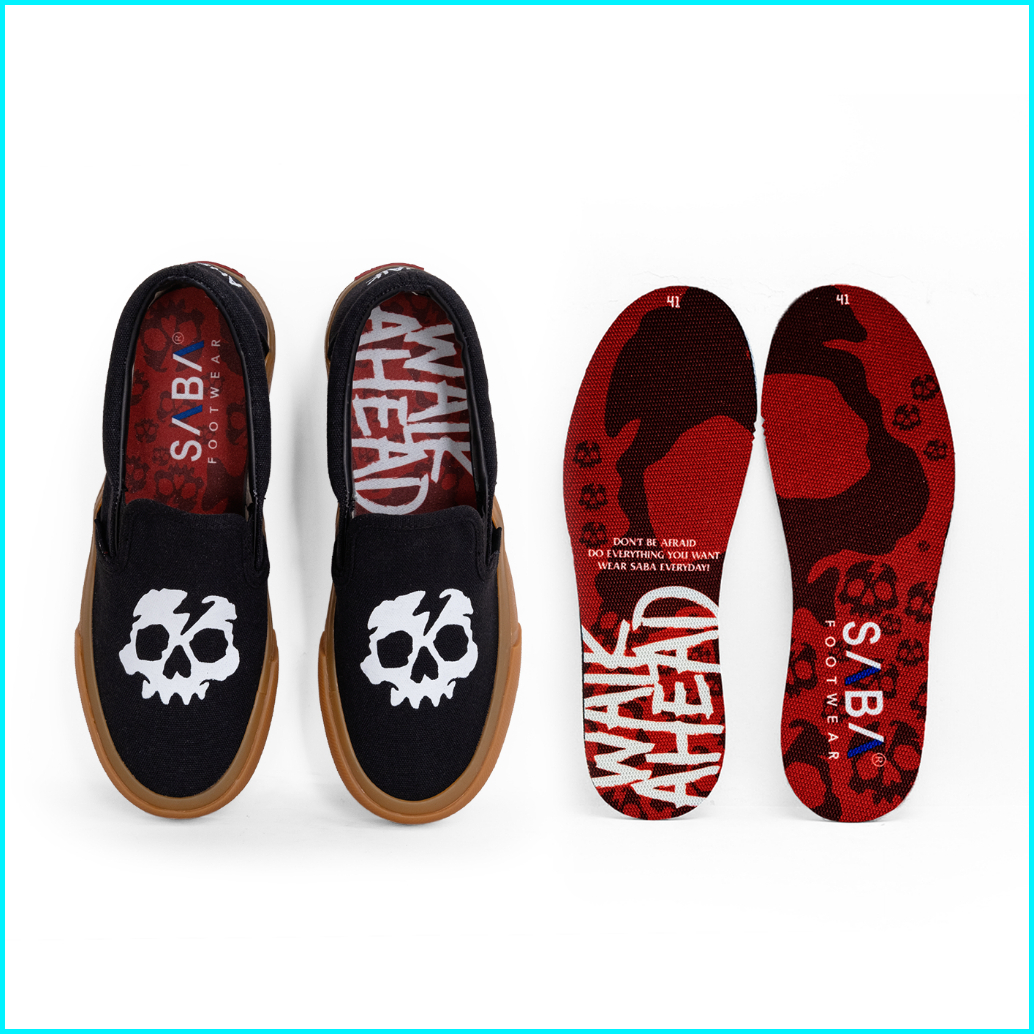 Saba Slip On Skull Black Gum - Sepatu Sneakers Casual Pria Wanita Original 100 Sk 04