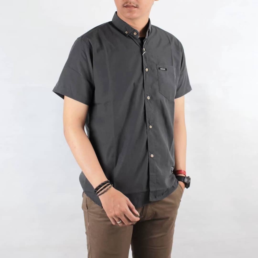 Kemeja Polos Lengan Pendek Slimfit Pria Dewasa Katun Linen Poplin Oxford Premium Cowok Slim - KLPD10