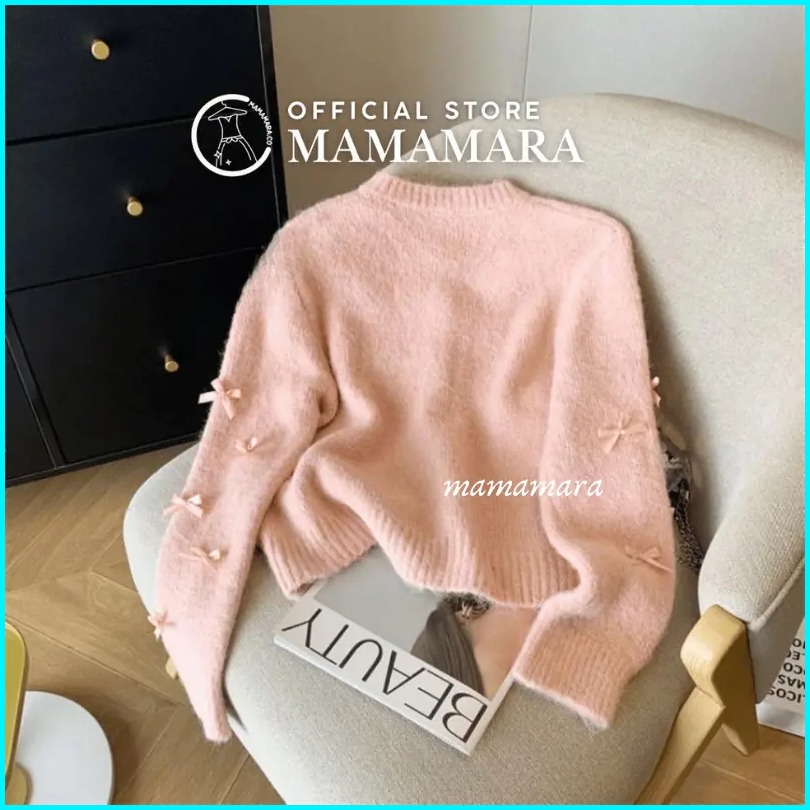 Mamamara - Cardigan Pita Coquette Aesthetic Knitwear Rajut Simple Wol Santai Crew Neck