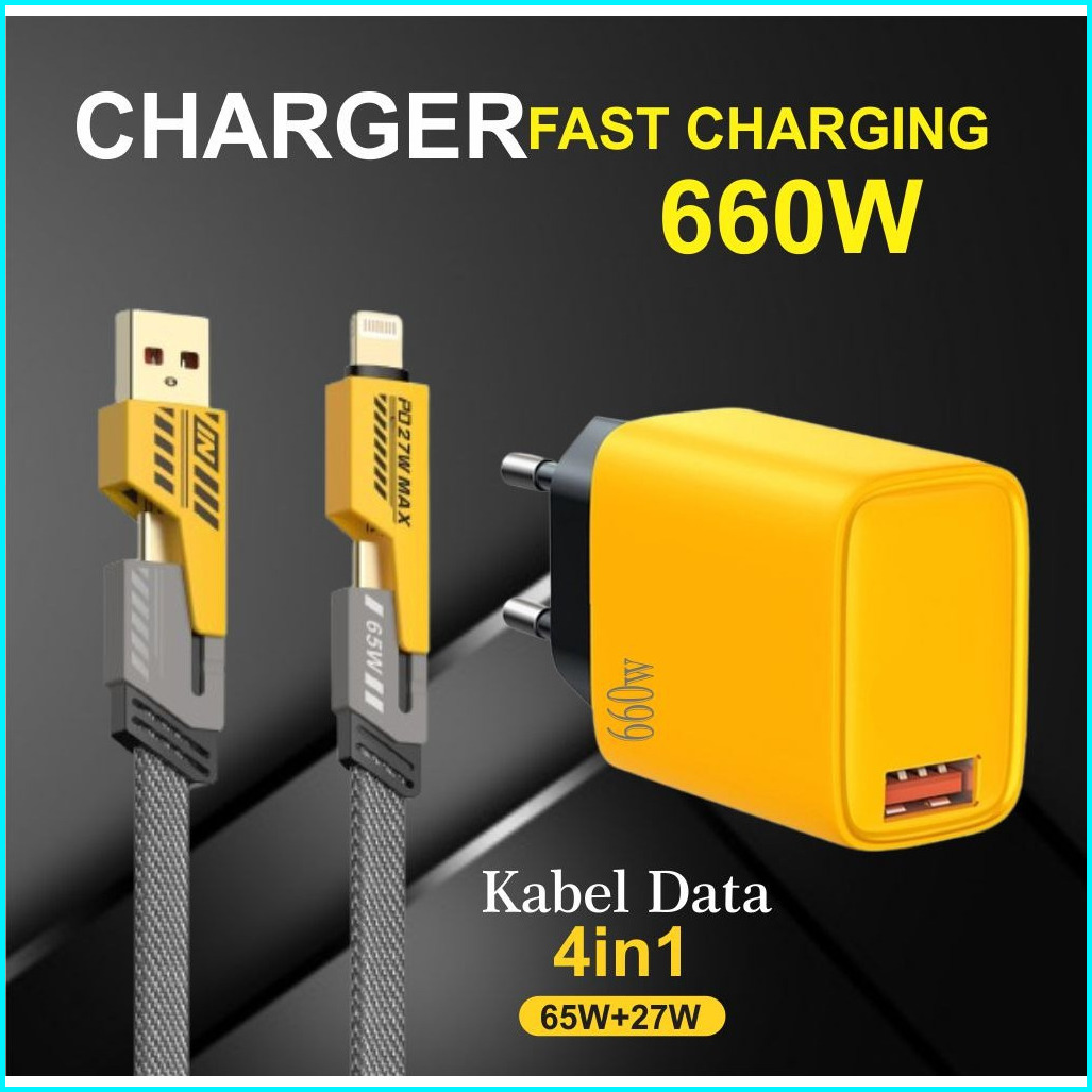 Charger 660w Batok 131 Kabel Data 4 In 1 Fast Charging Usb Type A Type C Ios Multiple Charging