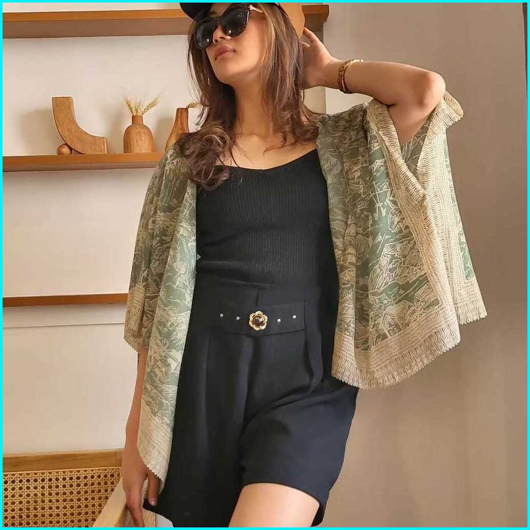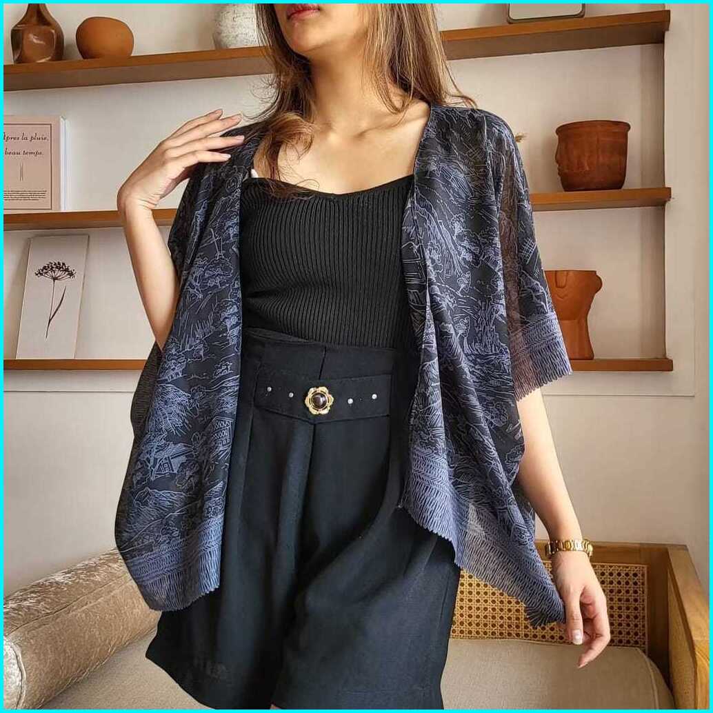 Outer Scarf Batwing Full Motif Lengan Model Kelalawar Outwear Best Seller Cardigan Arwen Kekinian