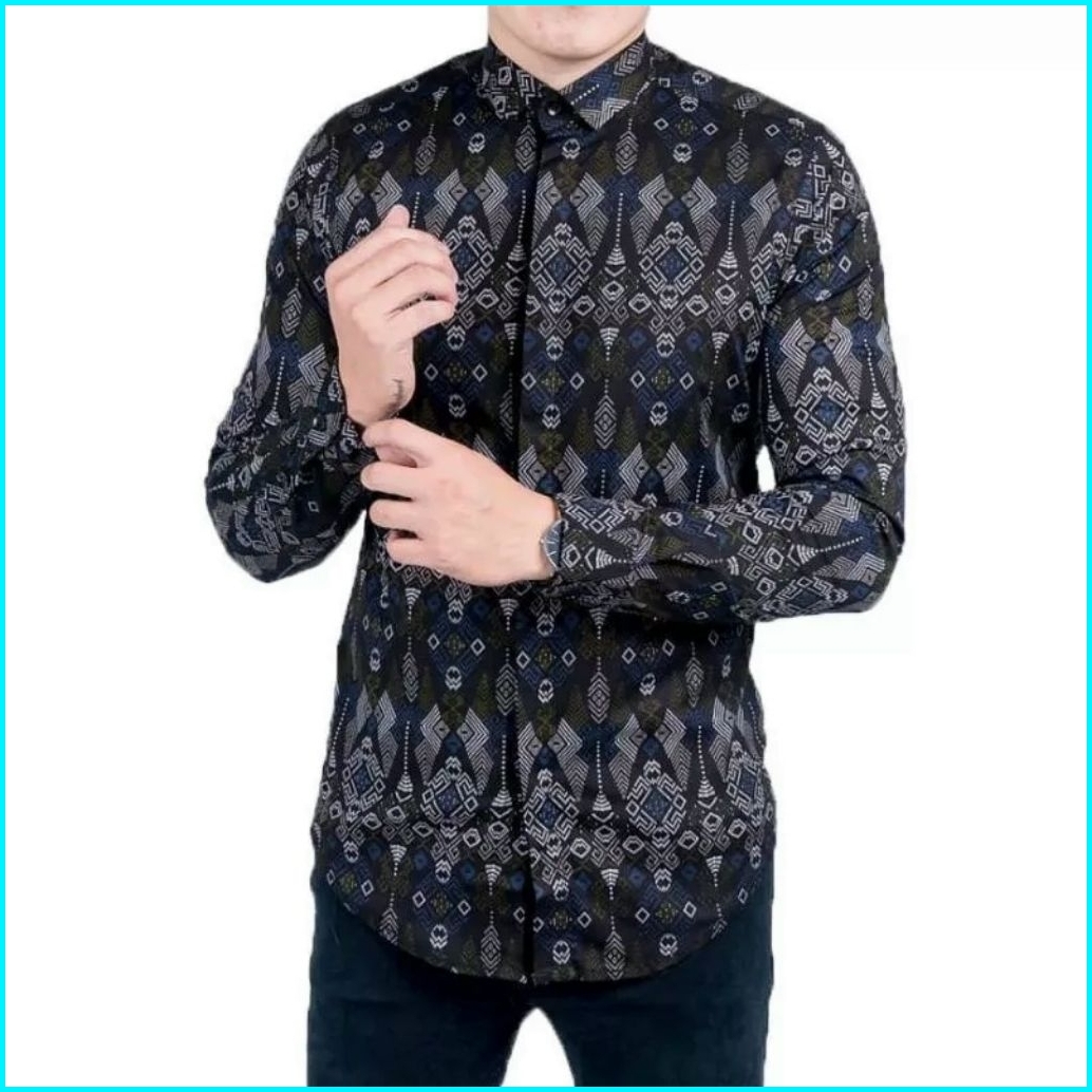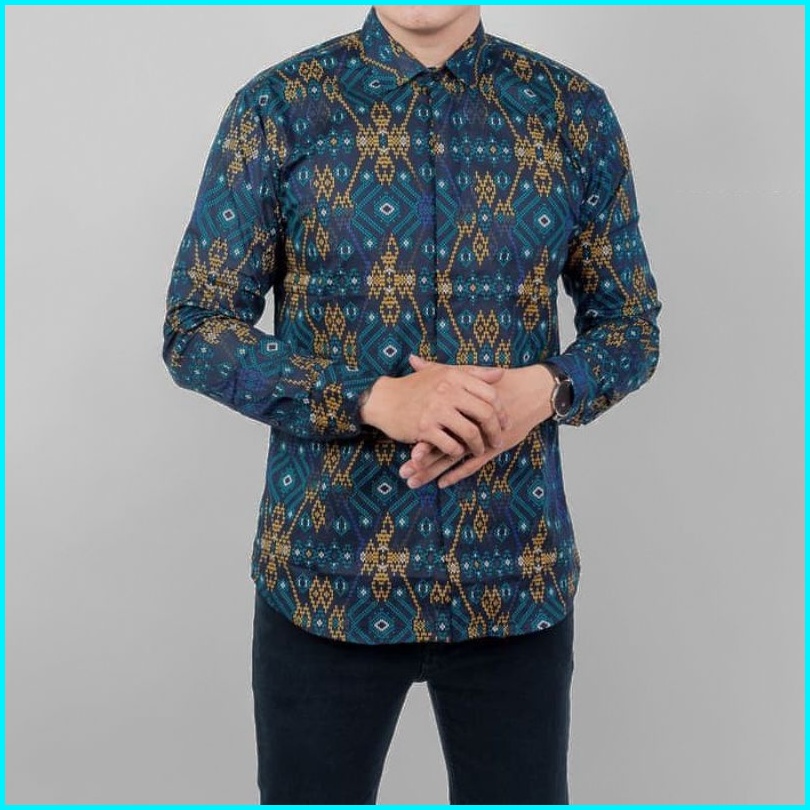 Ready Jumbo Hem Kemeja Batik Songket Pria Lengan Panjang Fashion Cowok Motif Keren Cotton Streath