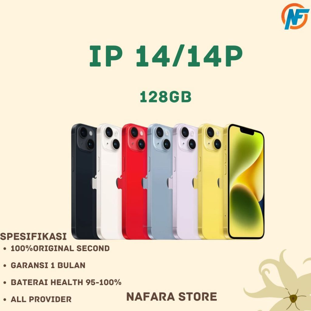 iPhone 14 -14PLUS -13 128GB Second Original - Kondisi Mulus, Baterai Sehat, Bisa Semua Operator.