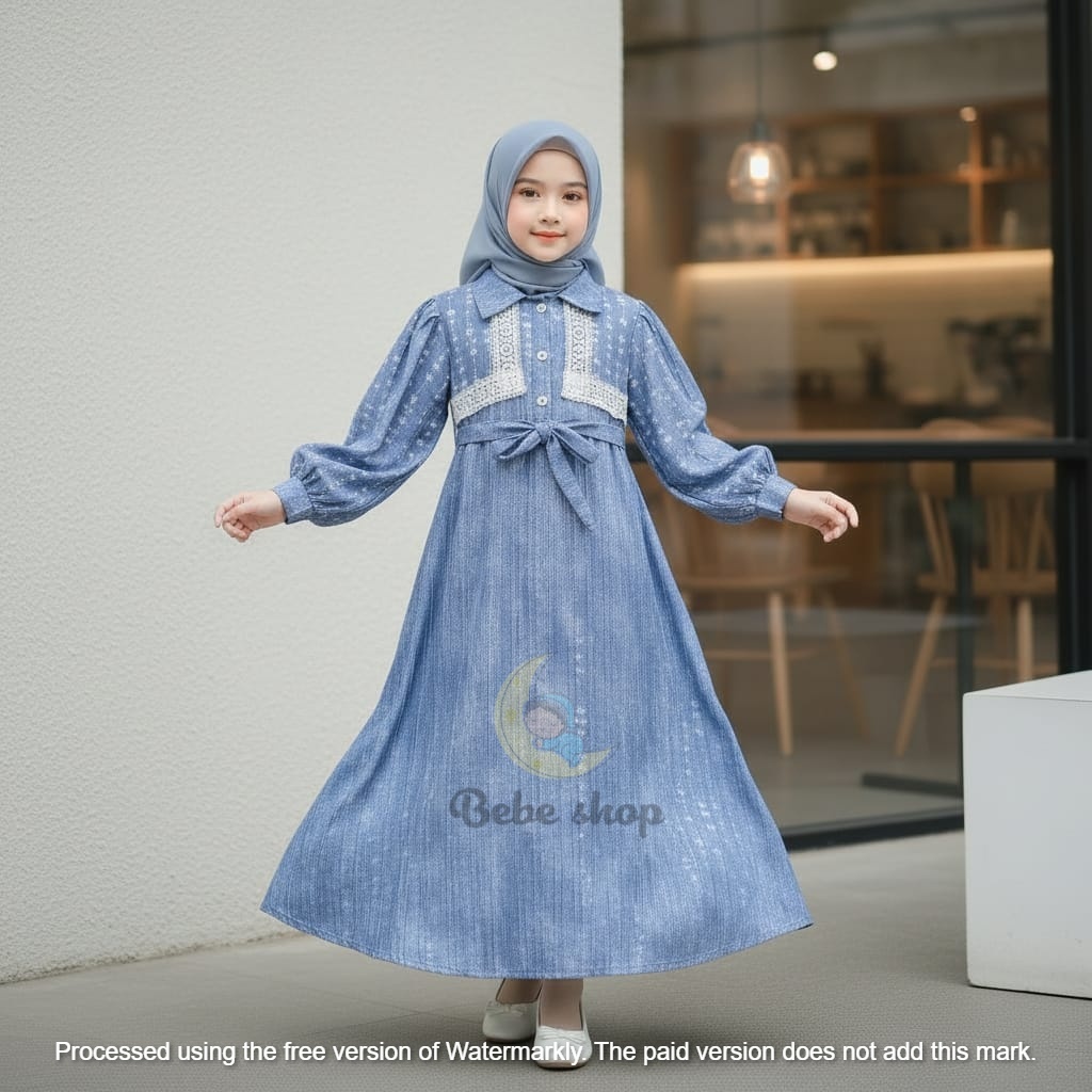 Gamis Anak Perempuan Kekinian Warna Denim Dan Biru Motif Bunga Bahan Cringkle Erora Tersedia Usia 1 Tahun Sampai 12 Tahu