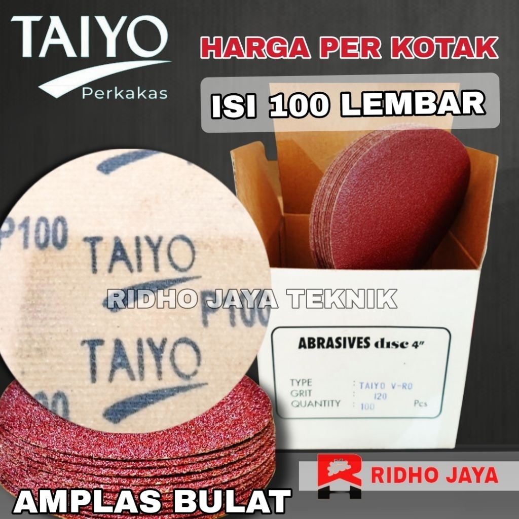 [1Kotak 100 Pcs] TAIYO Amplas Tempel Bulat 4 Inch Velcro Disc Grit 40-400