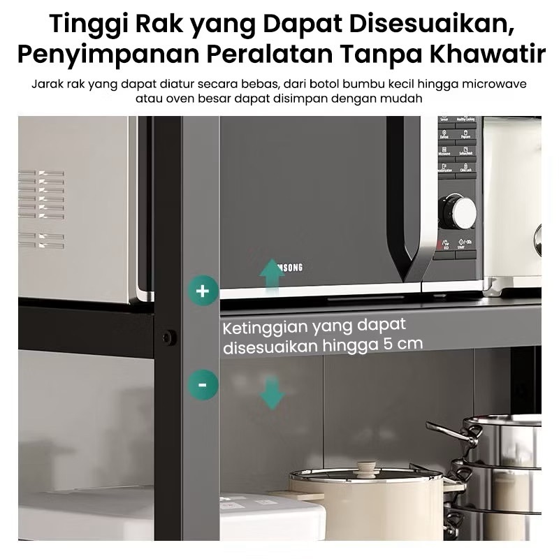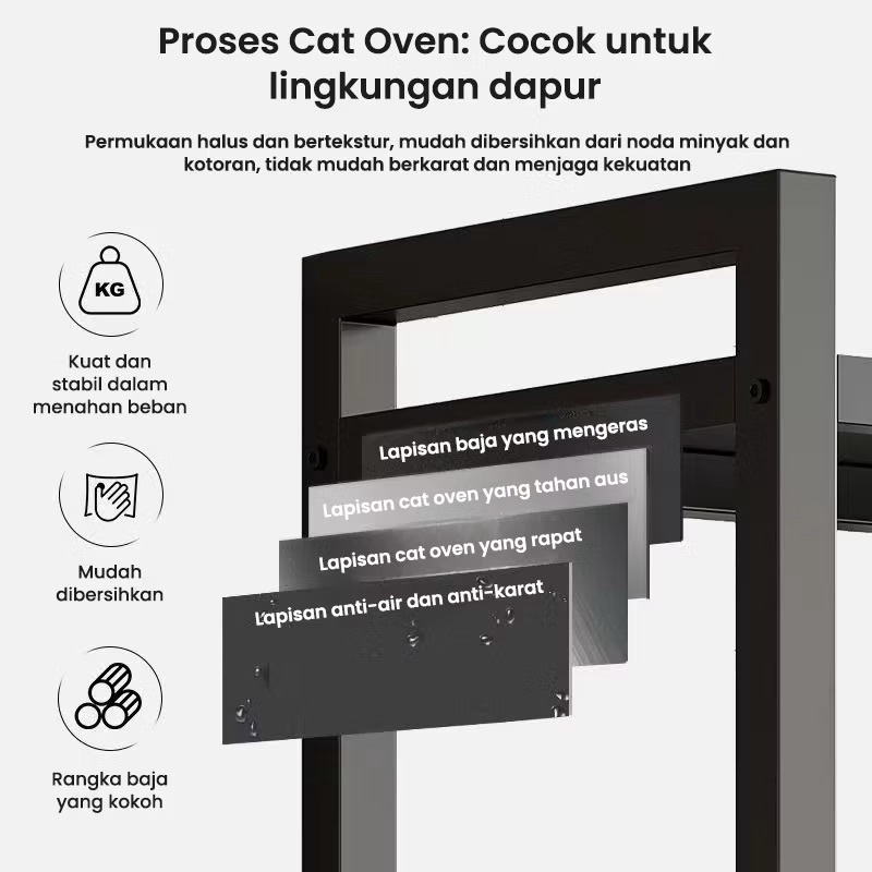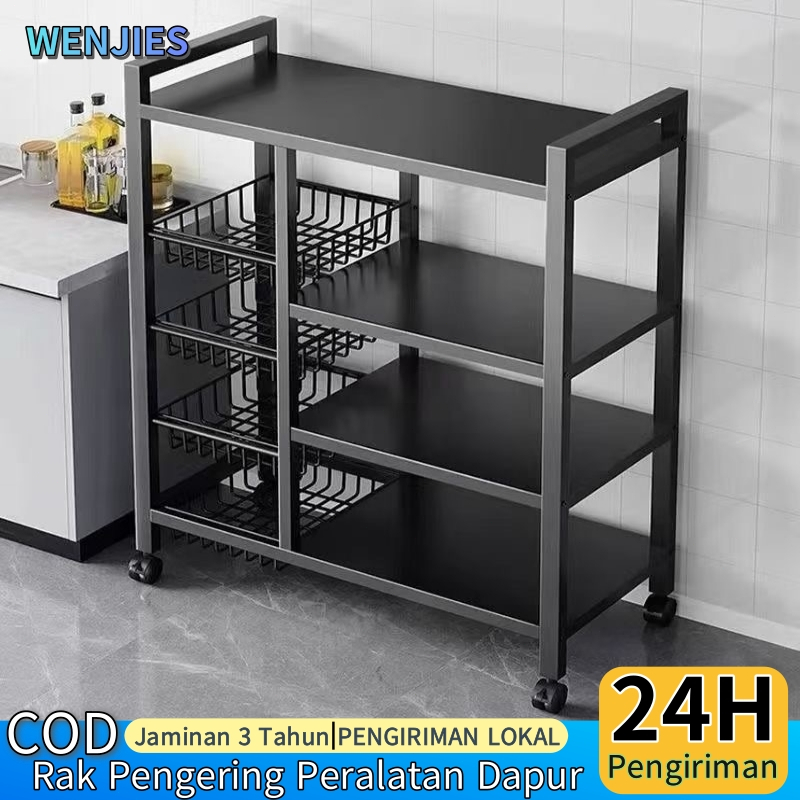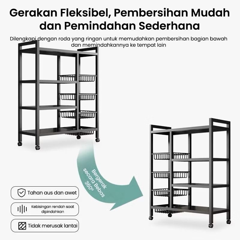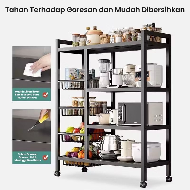 Rak Dapur 5 Susun Minimalis Rak Penyimpanan Sayuran Multi-ls Rak Baja Dengan Roda Rak Oven