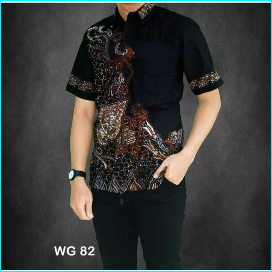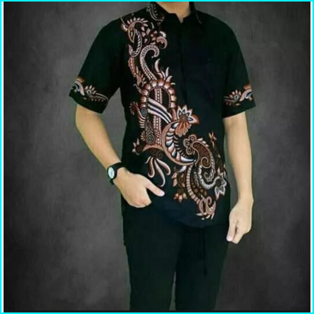 Tey-17 Batik Pria Asj Sa Hrb026 Kenongo Kemeja Tosca Pendek Pekalongan Padi M L Xl Sogan Tulis