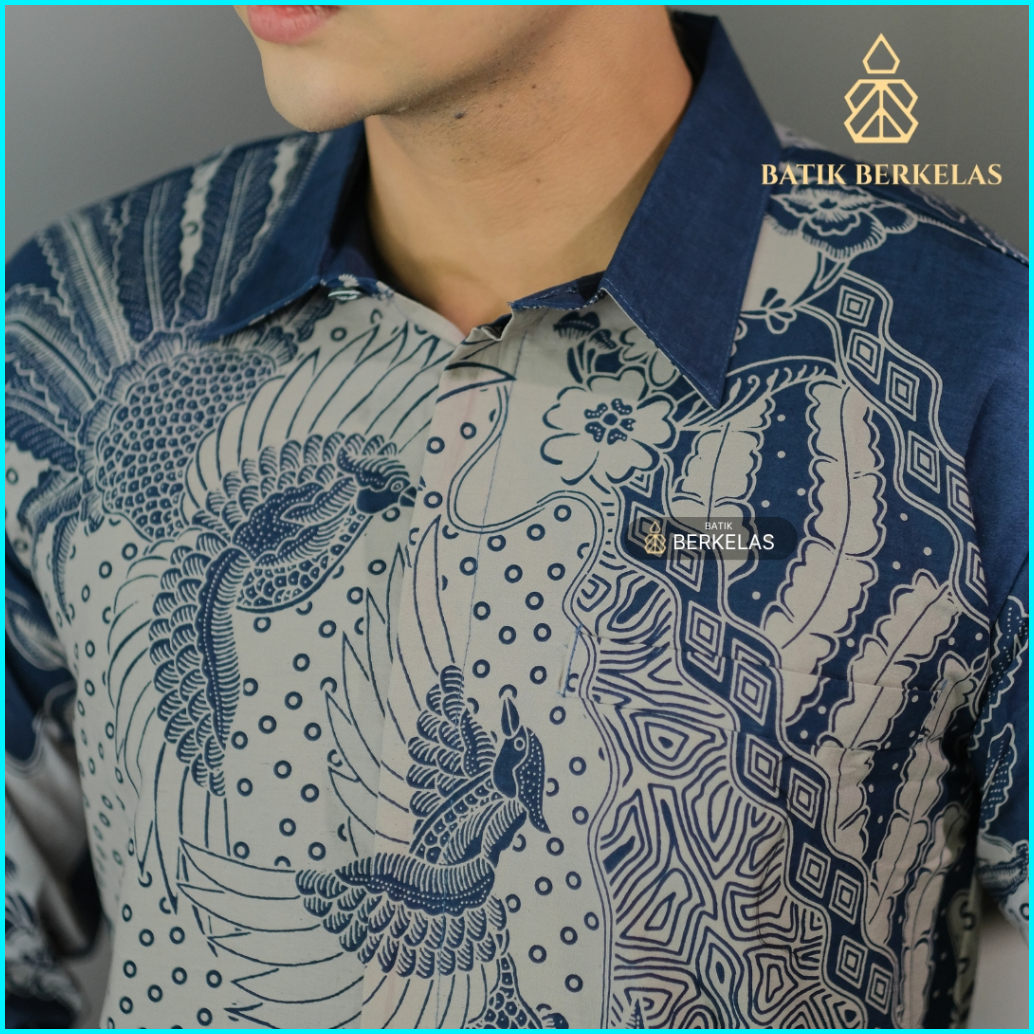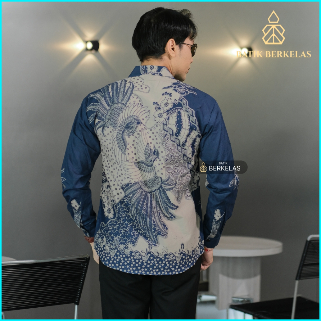 Batik Berkelas Luhur Navy Kemeja Batik Pria Slimfit Lapis Furing Katun Elegan Lengan Panjang Untuk Kondangan Lamaran Kan