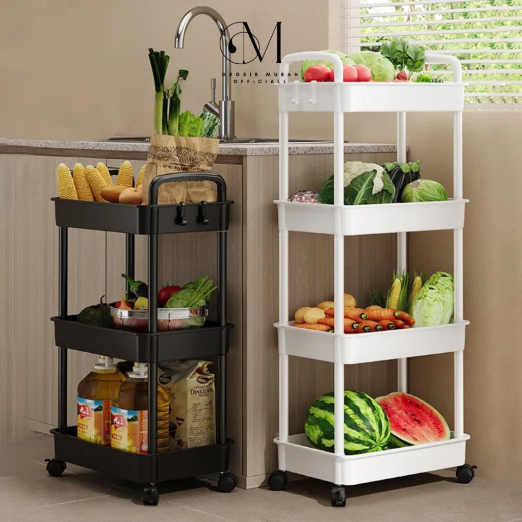 GROVE MAISON Square Rak Dapur Rak Tet Rak Susun Serbaguna 3-5 Tingkat dengan Roda