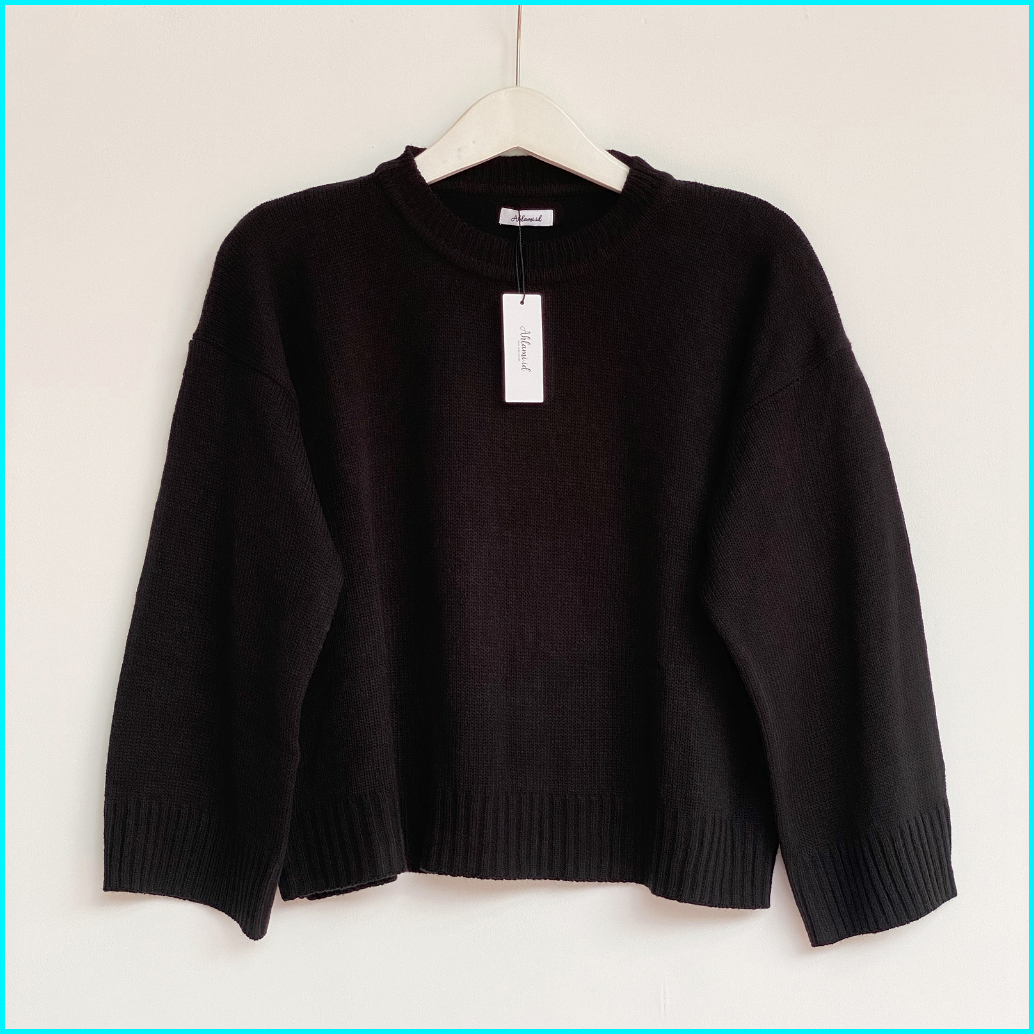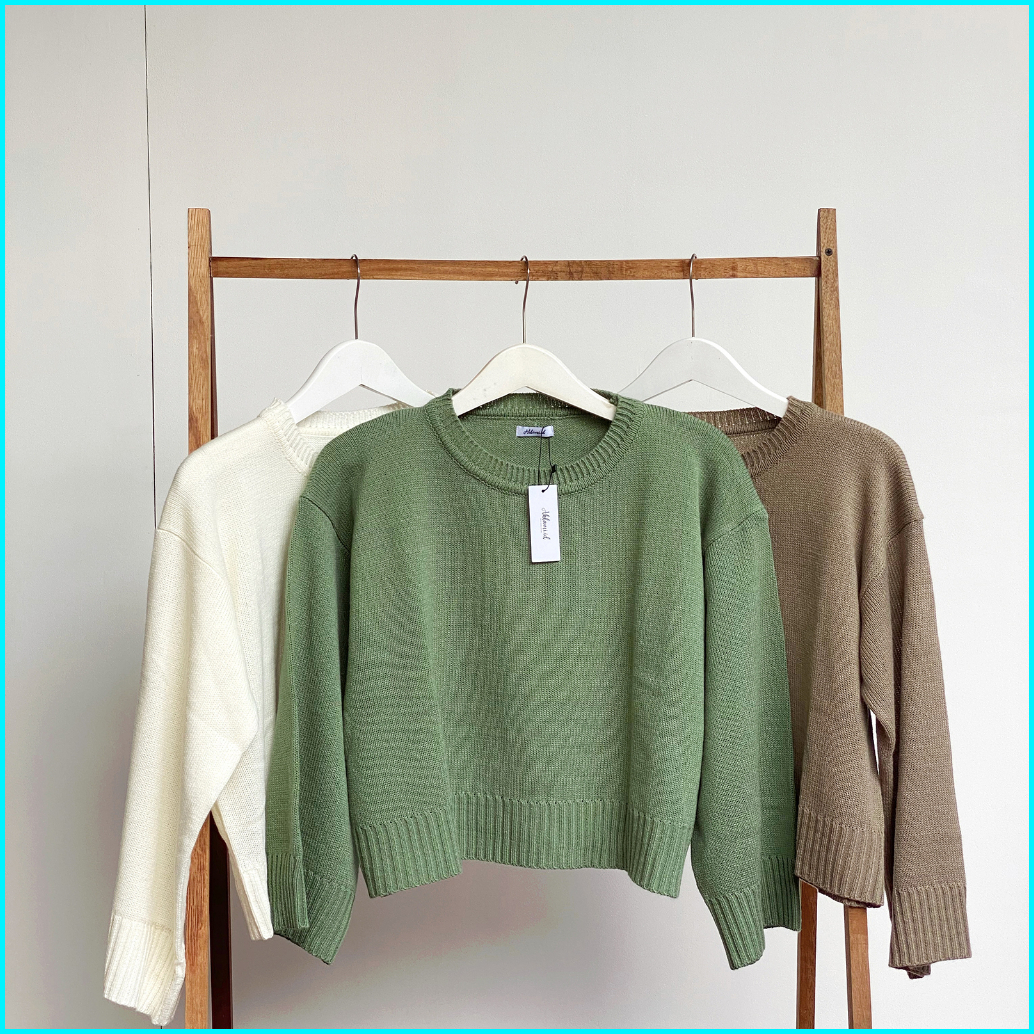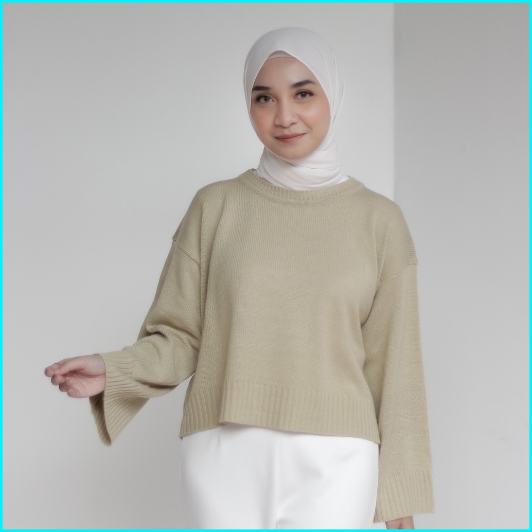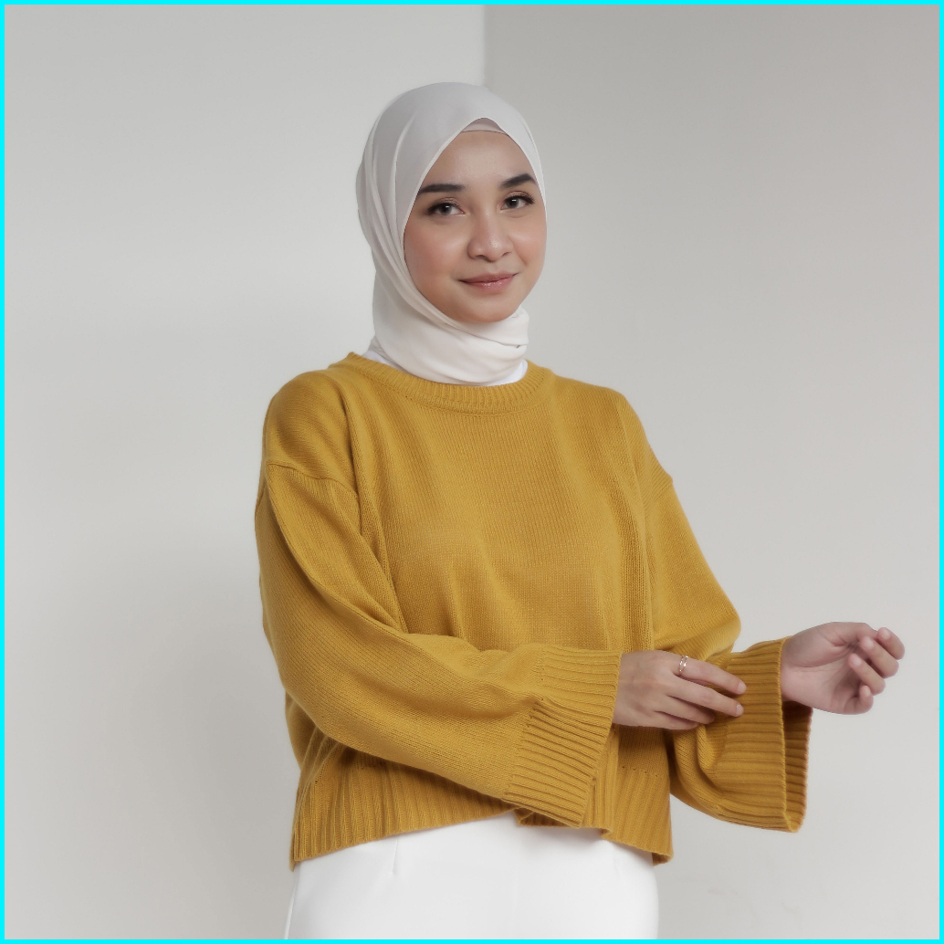 Ahlami- Noura Basic Crop Top Oversize Crop Top Rajut Sweatshirt Crop Oversize Panjang Lengan Sweater Oversize