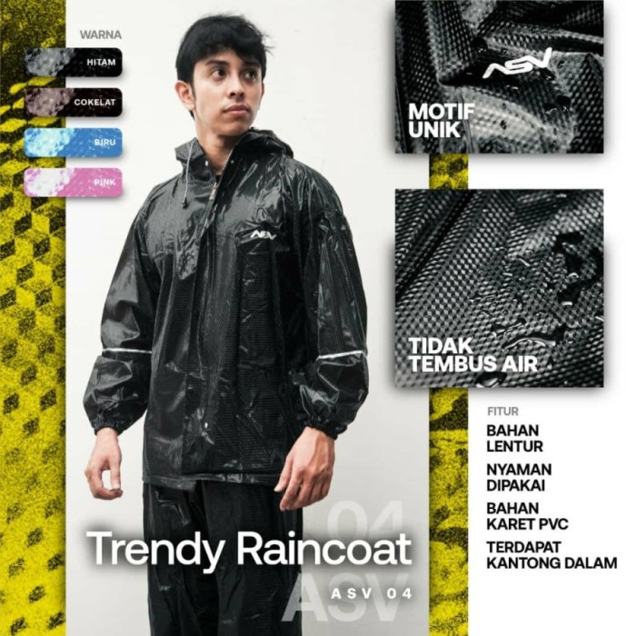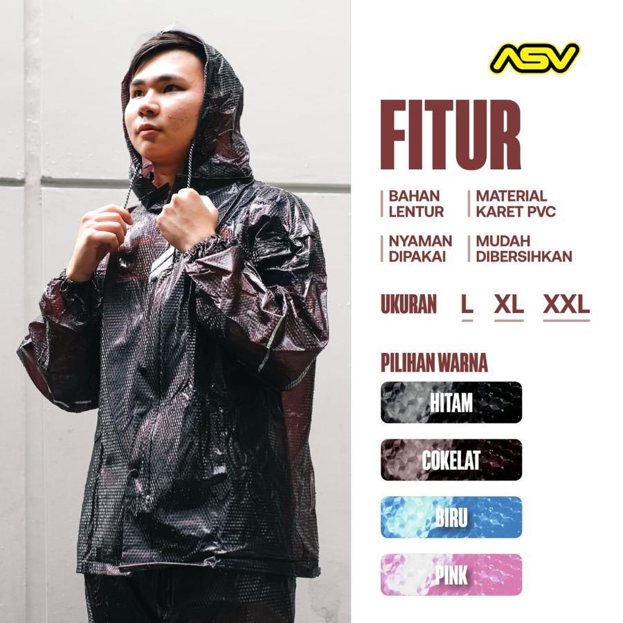Set Jas Hujan Karet Set Jaket Lengan Celana Asv 4 04 Asv04 Motif Carbon Metalic Elastis Hitam Coklat