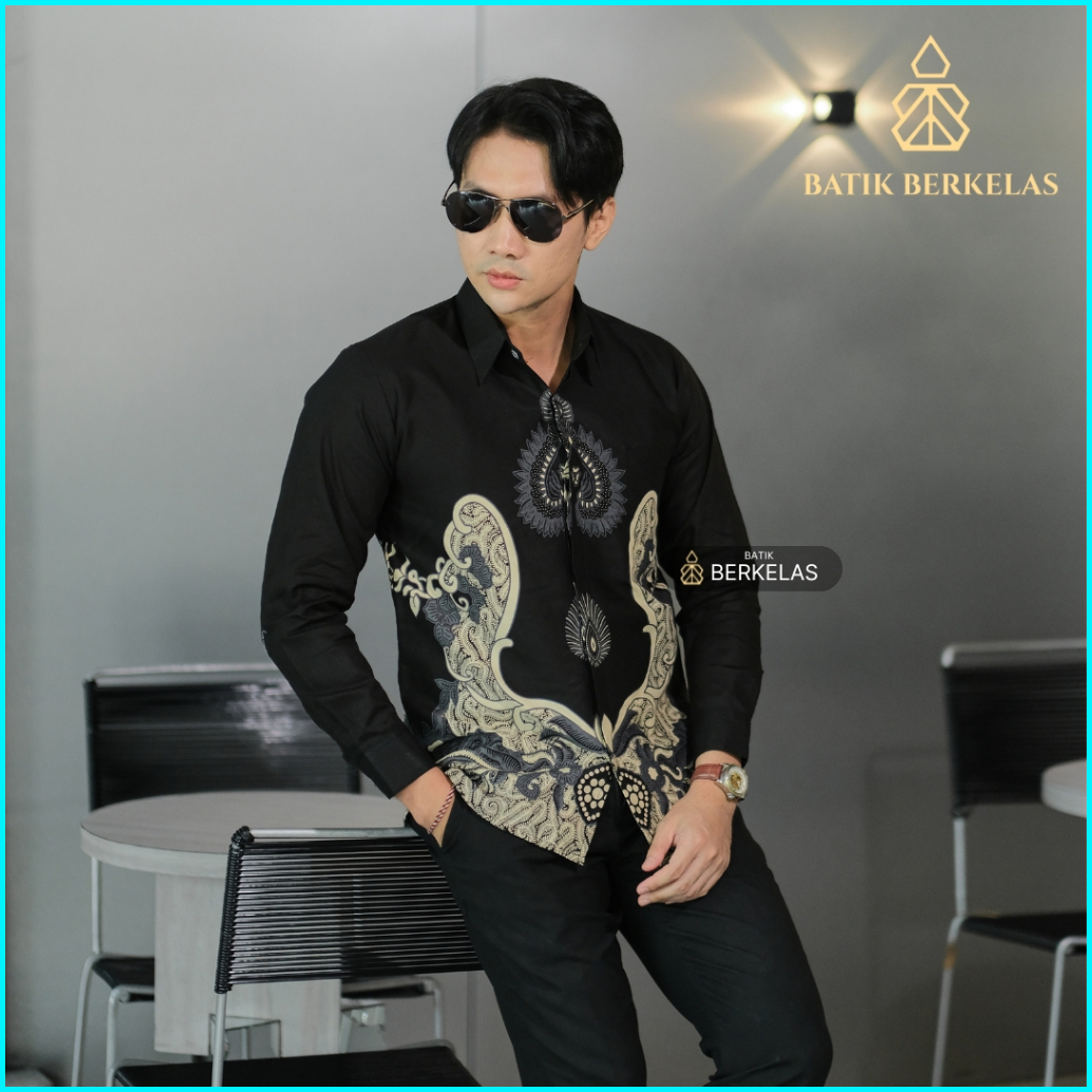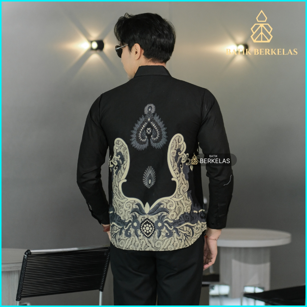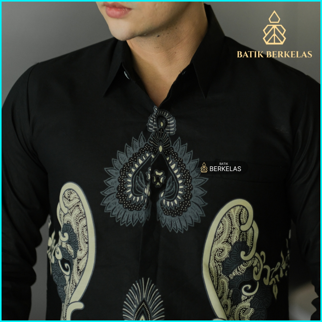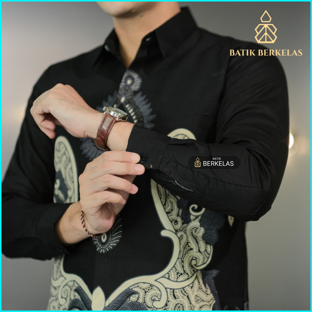 Batik Berkelas Asri Hitam Kemeja Batik Pria Slimfit Lapis Furing Katun Elegan Lengan Panjang Untuk Kondangan Lamaran Kan