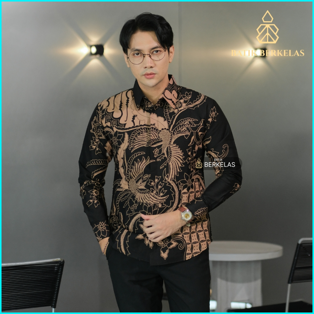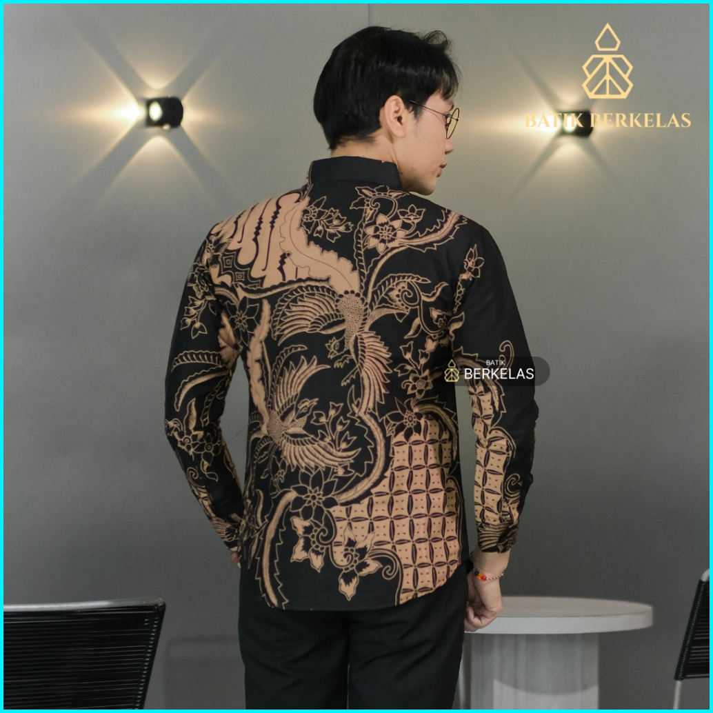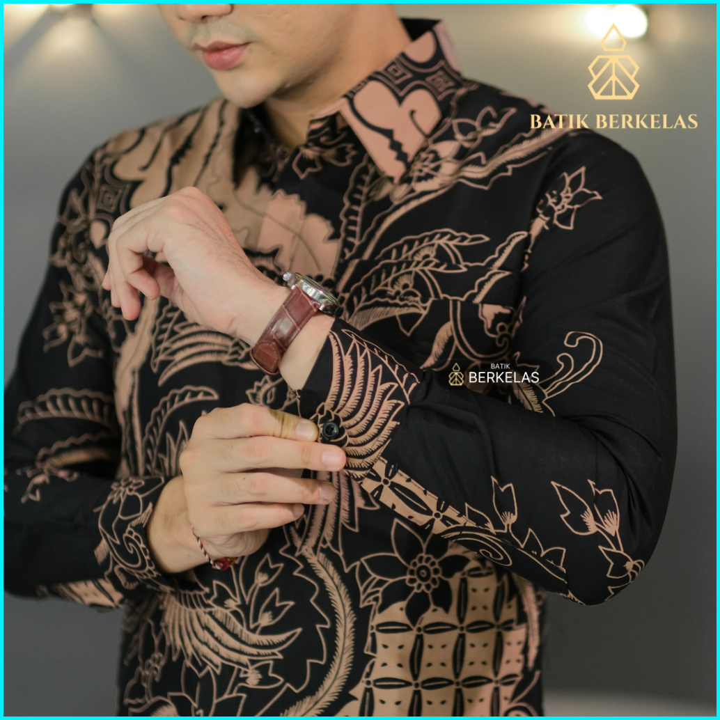 Batik Berkelas Cakra Hitam Kemeja Batik Pria Slimfit Lapis Furing Katun Elegan Lengan Panjang Untuk Kondangan Lamaran Ka