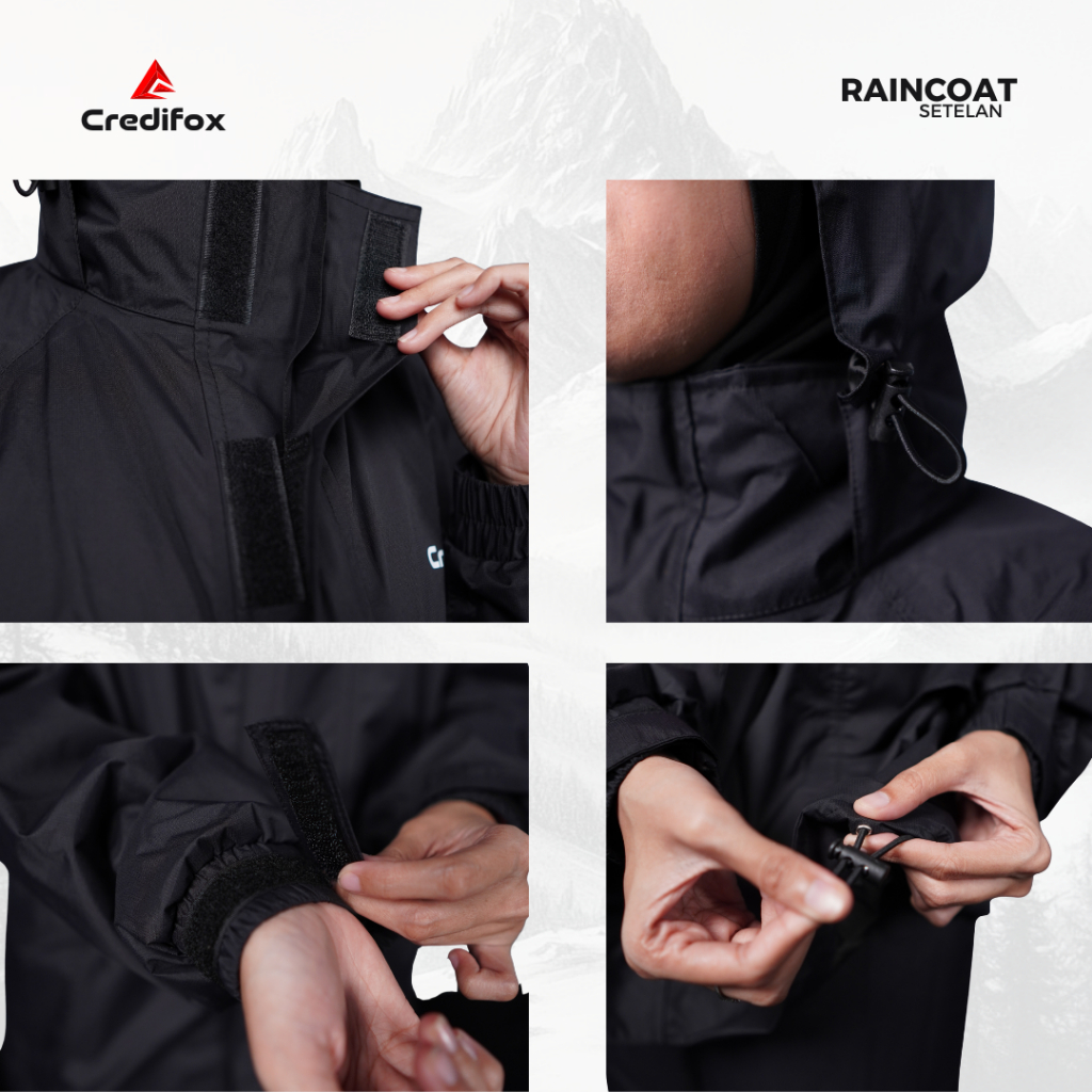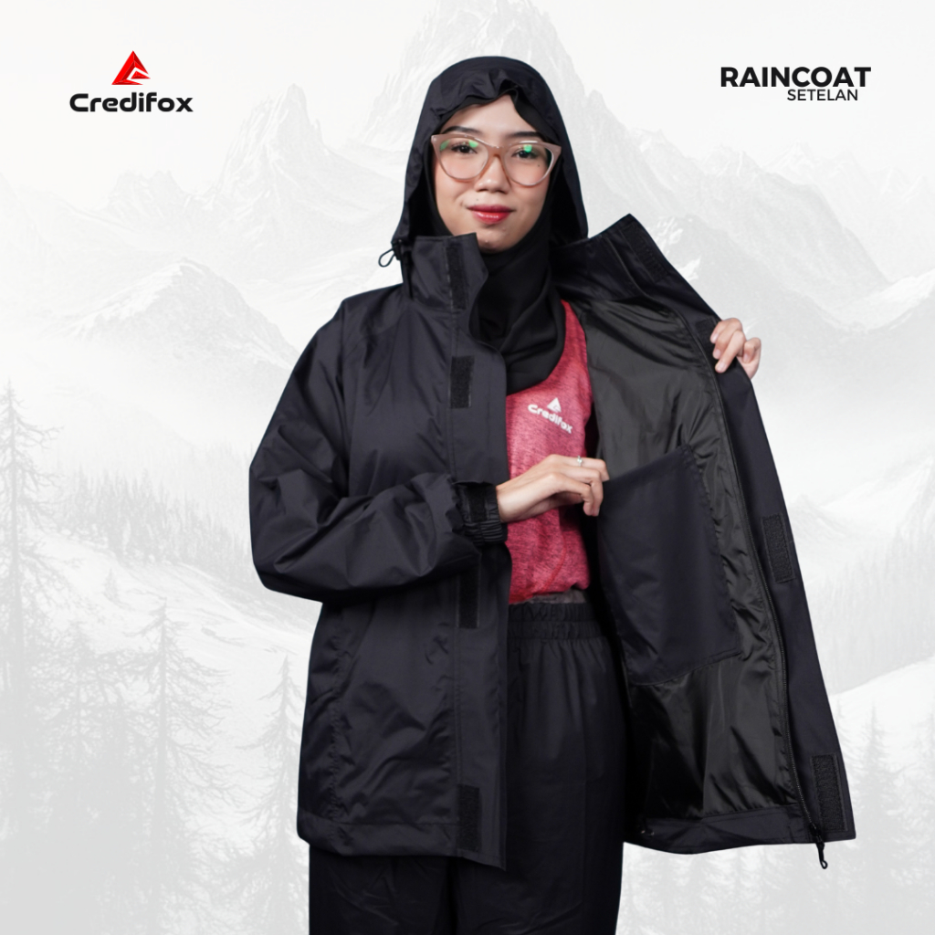Credifox Raincoat Setelan Bahan Taslan Balon Latex Thunder Rain Series Full Jahitan Seal - Jas Hujan Outdoor - Jas Ujan