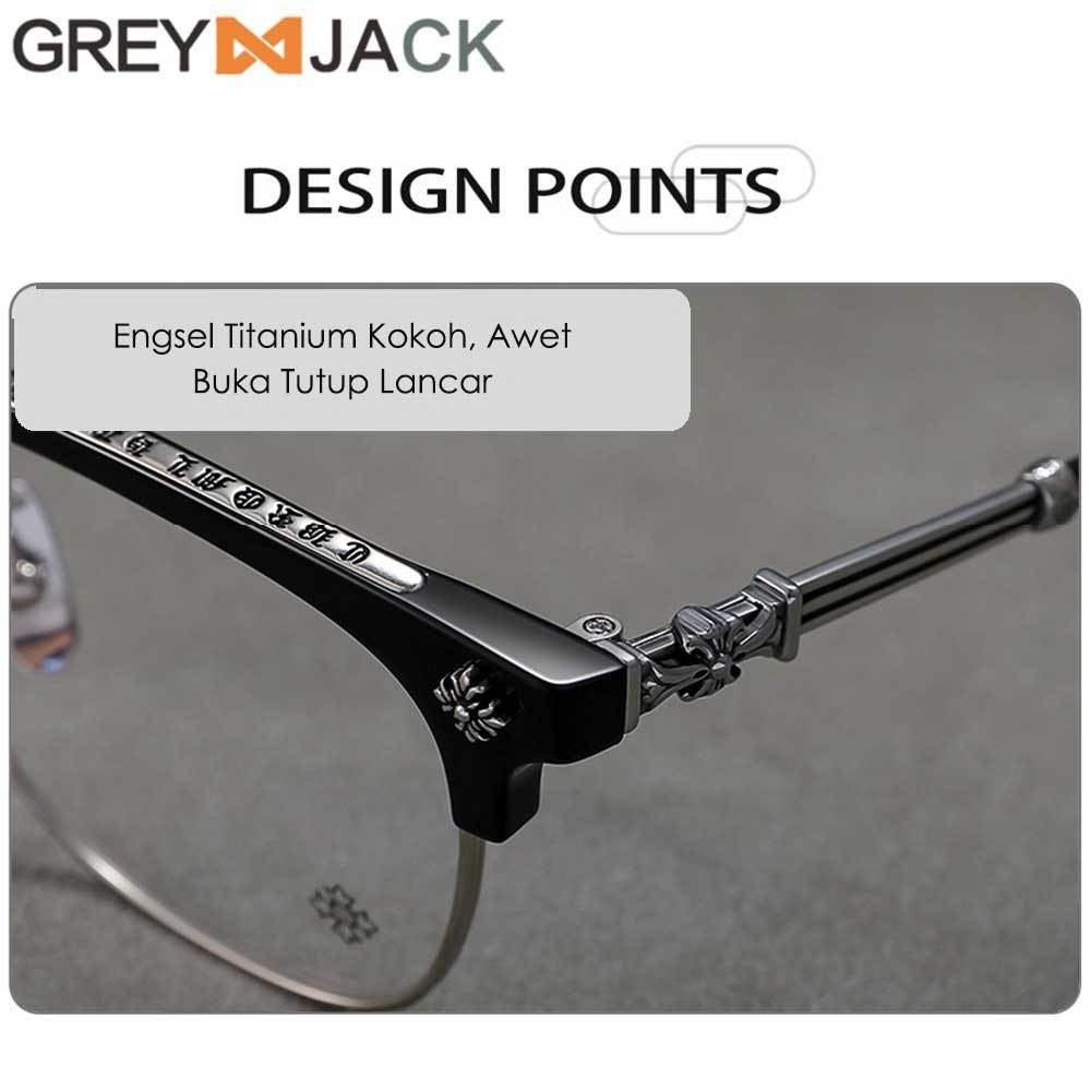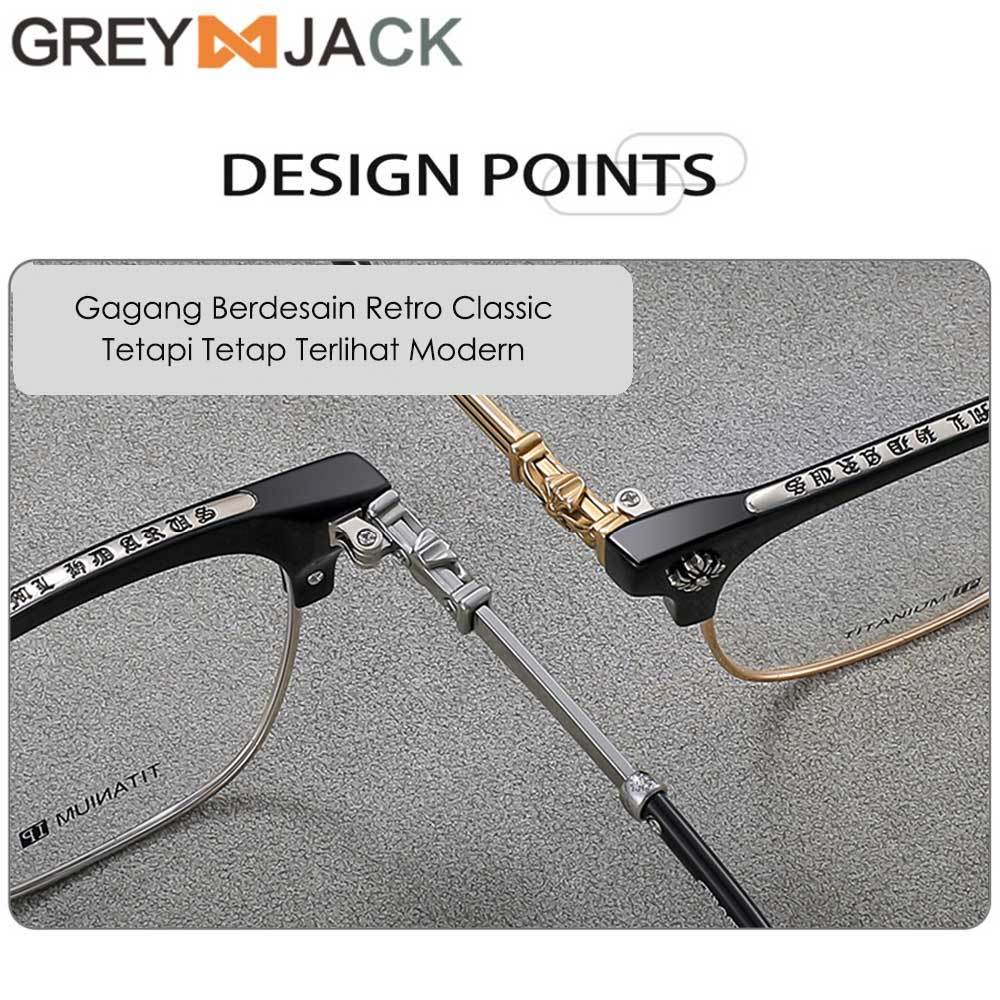 Grey Jack Frame Kacamata Titanium Model Kotak Retro Vintage Fashion Pria Bisa Minus Antiradiasi Bluecromic 5192