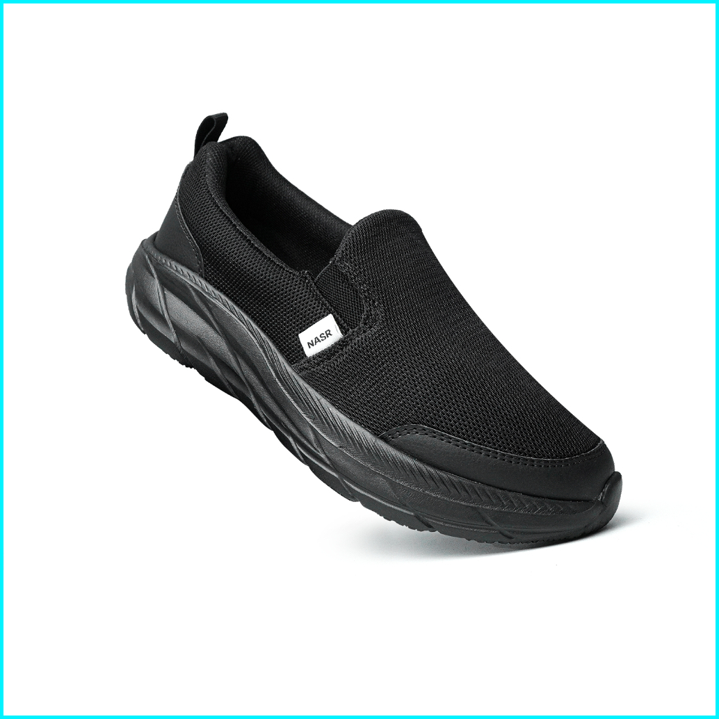 Nasr Slip On Full Black - Sneakers Kasual Pria Wanita