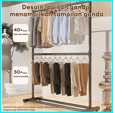 Rak Gantungan Baju Besi Stand Hanger Double Gawang Baju Jemuran Pakaian Portable Rak Baju Hanger