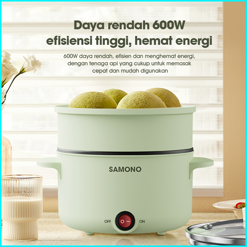 Samono Panci Listrik Serbaguna 1 2l Anti Lengket 600 Watt Material Food Grade Free Kukusan Sw-dg04