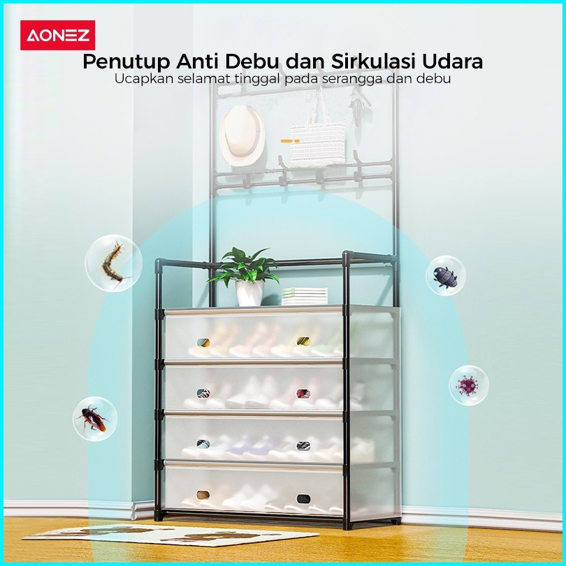 Aonez Rak Sepatu Tertutup Anti Debu Serbaguna Gantungan Tas Pakaian Rak Penyimpanan Dengan Penutup Penyimpanan Gantung