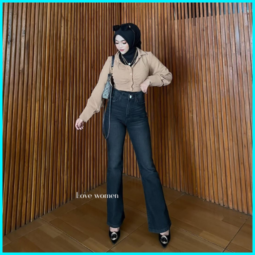 Highwaist Cutbray Jeans Retro 114 - Celana Jeans Cutbray Premium