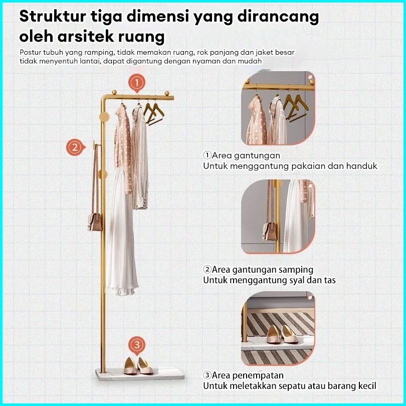 Stand Hanger Gantungan Baju Tas Berdiri Multifungsi Tahan Karat 170cm Rak Gantugan