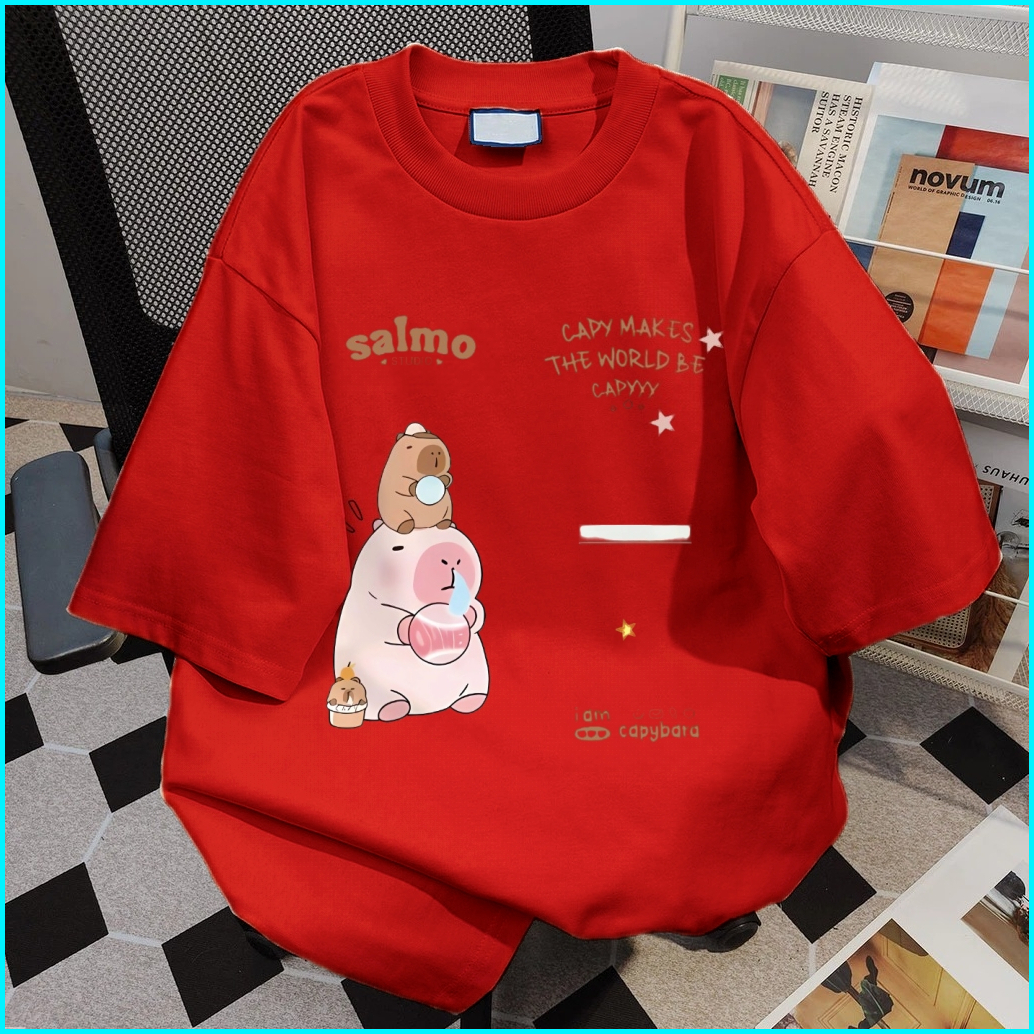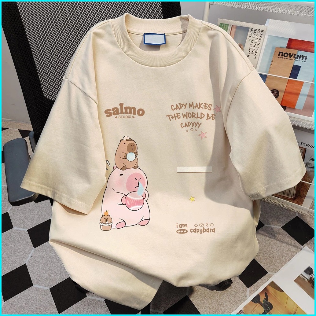 Kaos T-shirt Wanita Korea Kaos Oversized 100 Katun Motif Kapibara Lucu Kaos Longgar Wanita Oversized