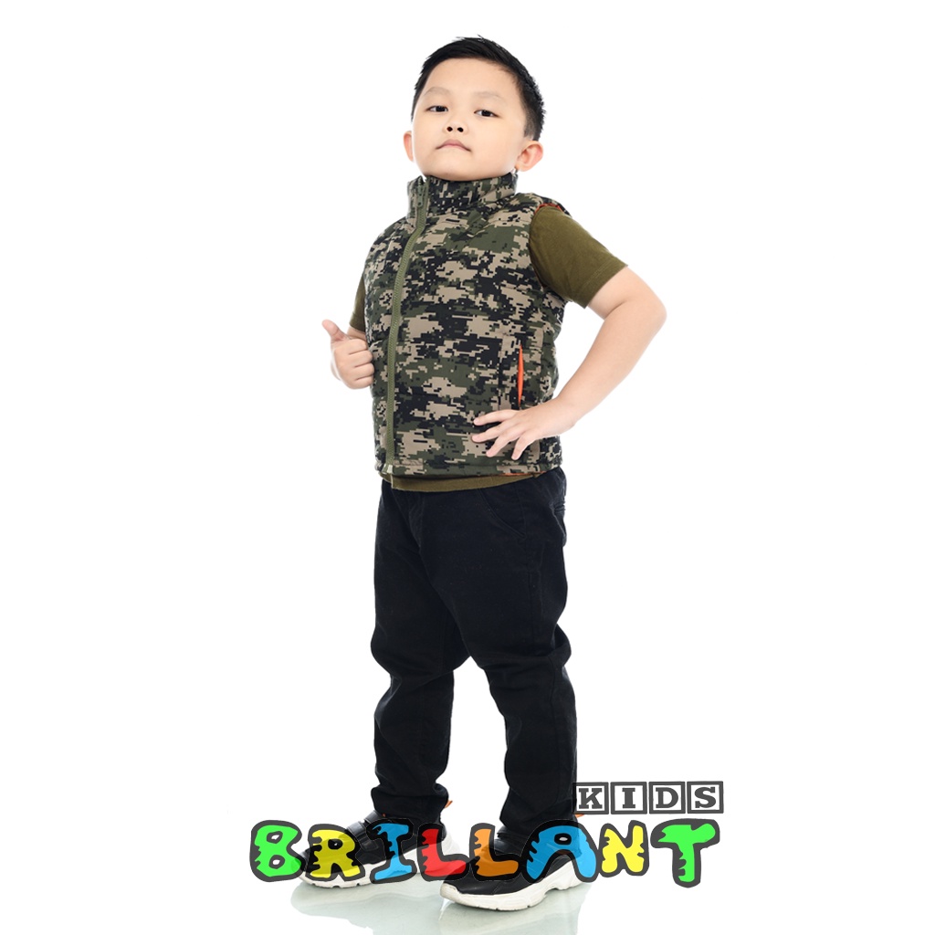 Rompi Anak Laki-laki Parasut Vest Korea Anti Angin Hangat Tebal dan Berkualitas Warna Loreng Army